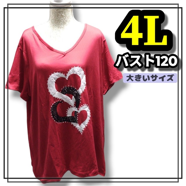 大きいサイズ レディース 半袖 Tシャツ ハート オーバーサイズ プリント カジュアル ヒップホップ ストリート 原宿 4L 3L
