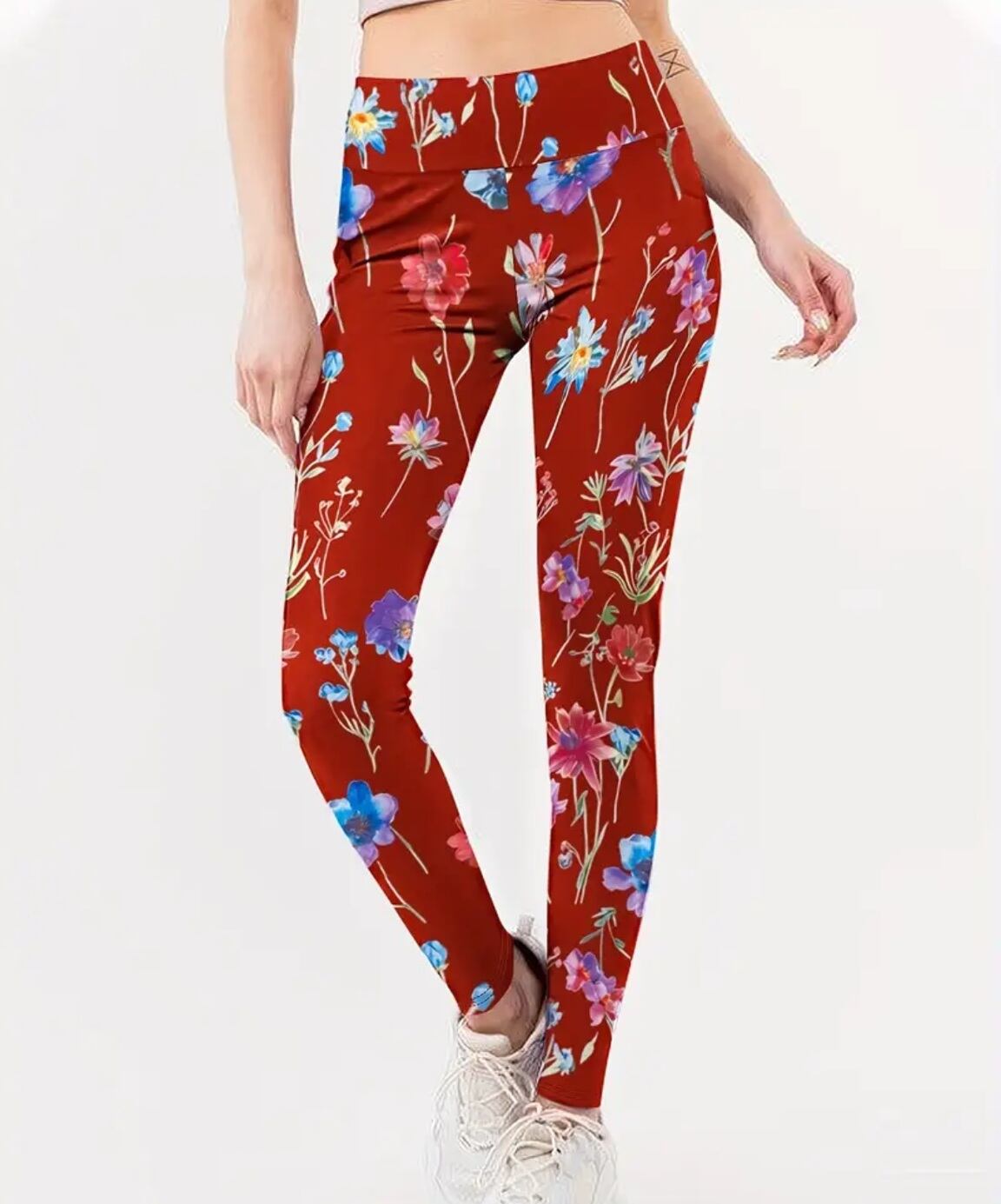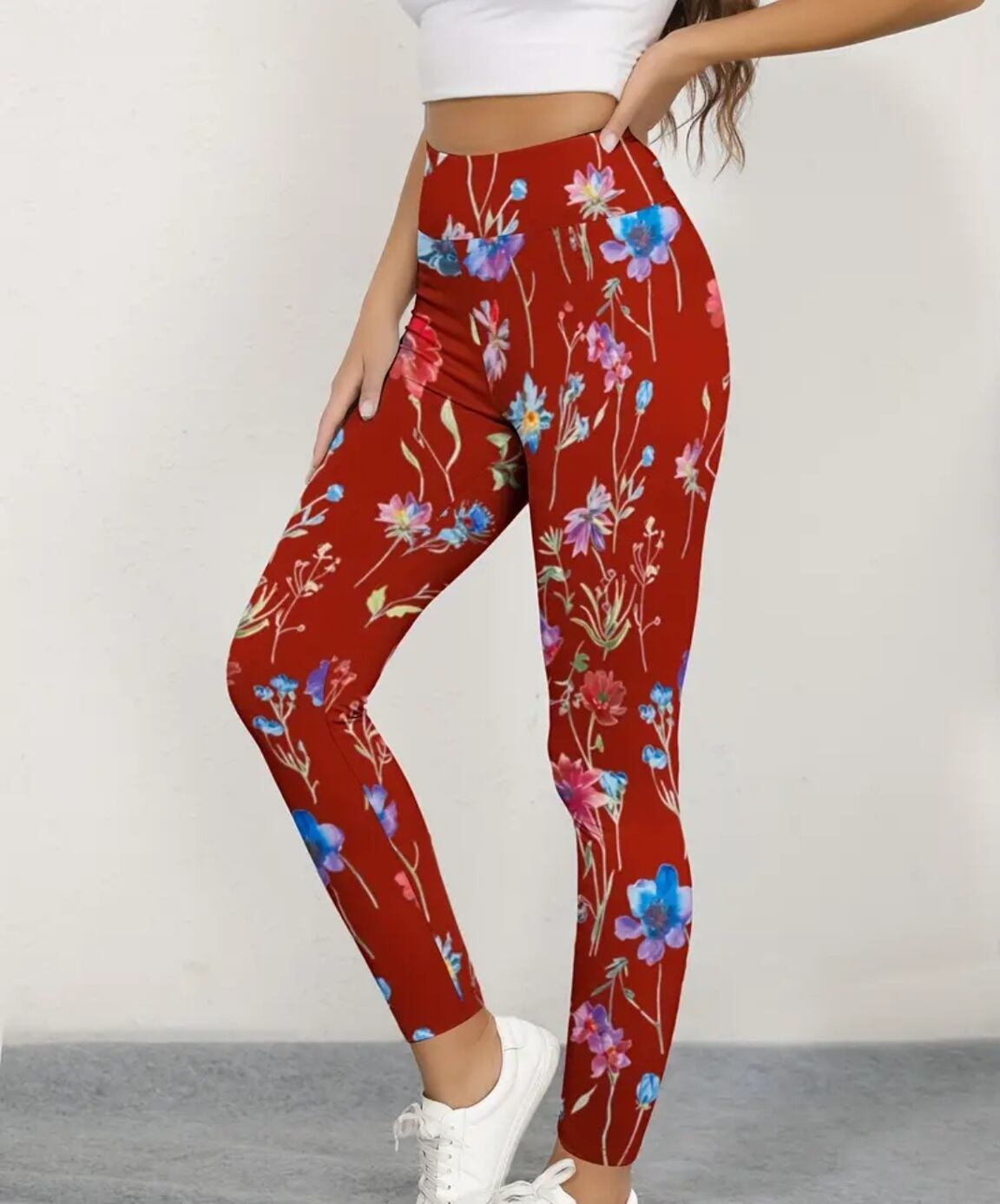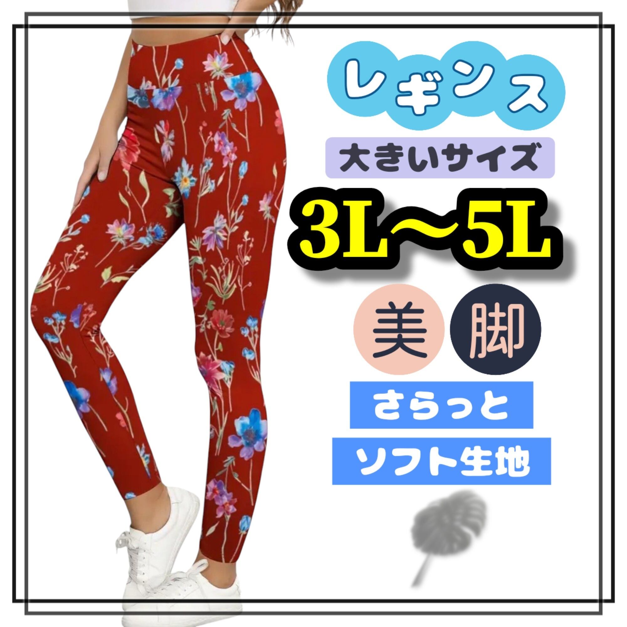 大きいサイズ レディース レギパン スパッツ プラスサイズ カジュアル ヒップホップ ストリート 赤 花柄 総柄 ソフト ロング スキニー 美脚 ヨガ 3L 4L 5L プラスサイズ