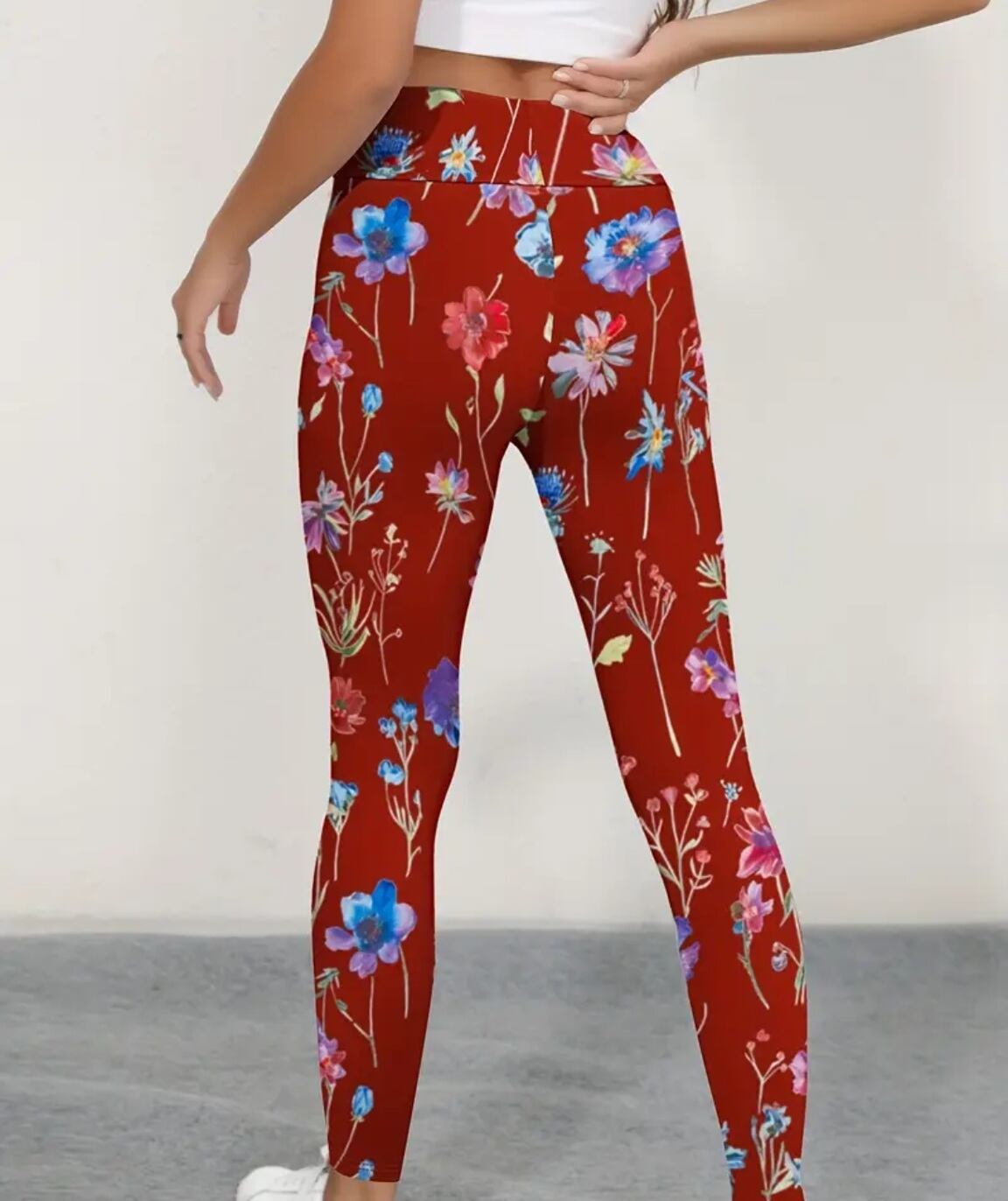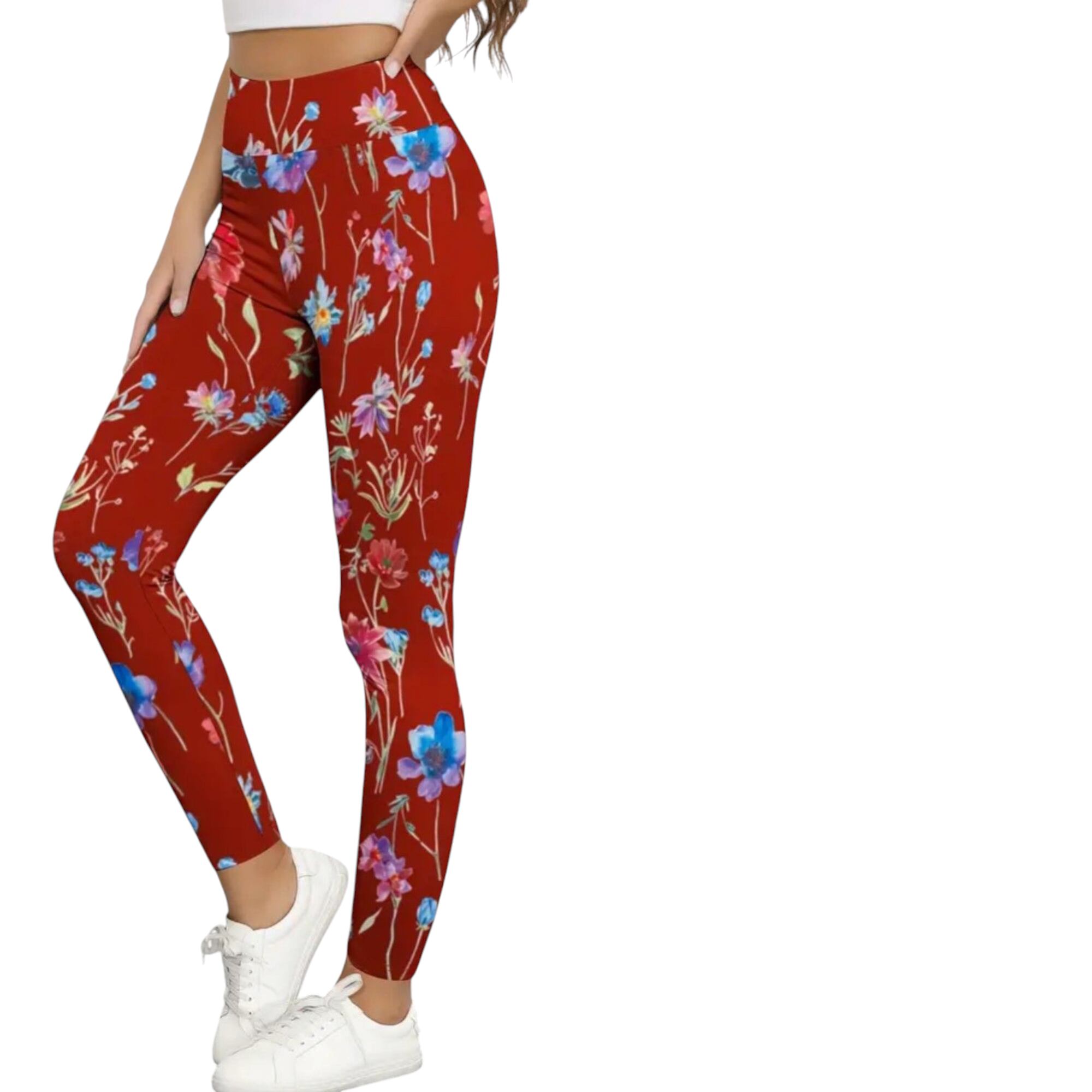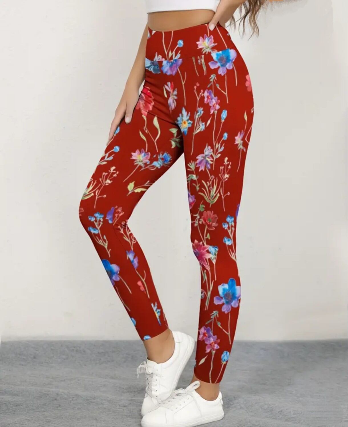 大きいサイズ レディース レギパン スパッツ プラスサイズ カジュアル ヒップホップ ストリート 赤 花柄 総柄 ソフト ロング スキニー 美脚 ヨガ 3L 4L 5L プラスサイズ