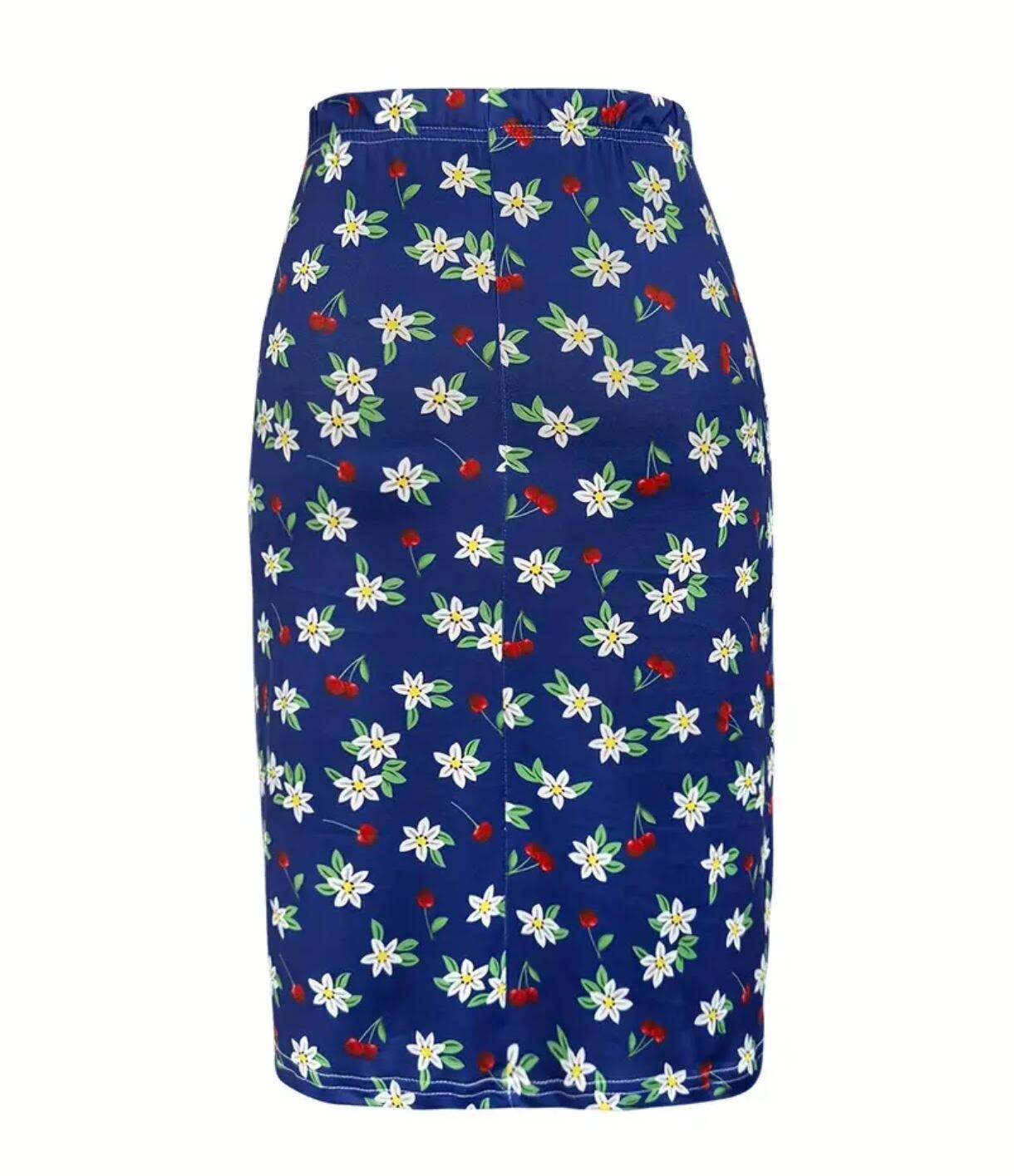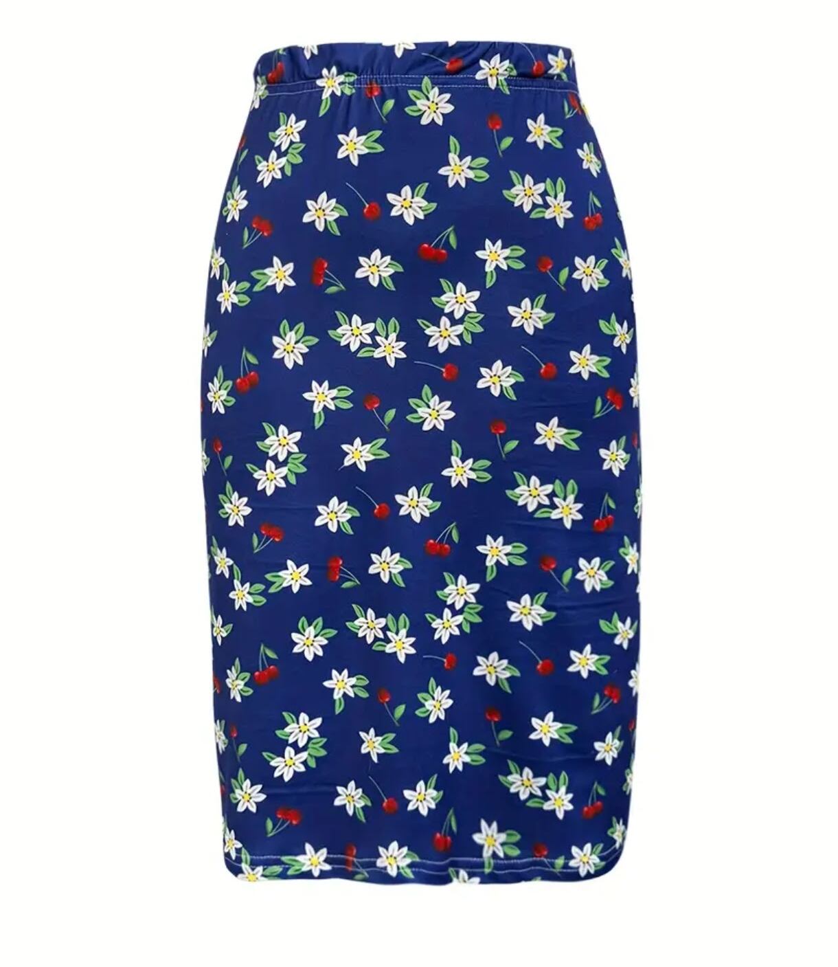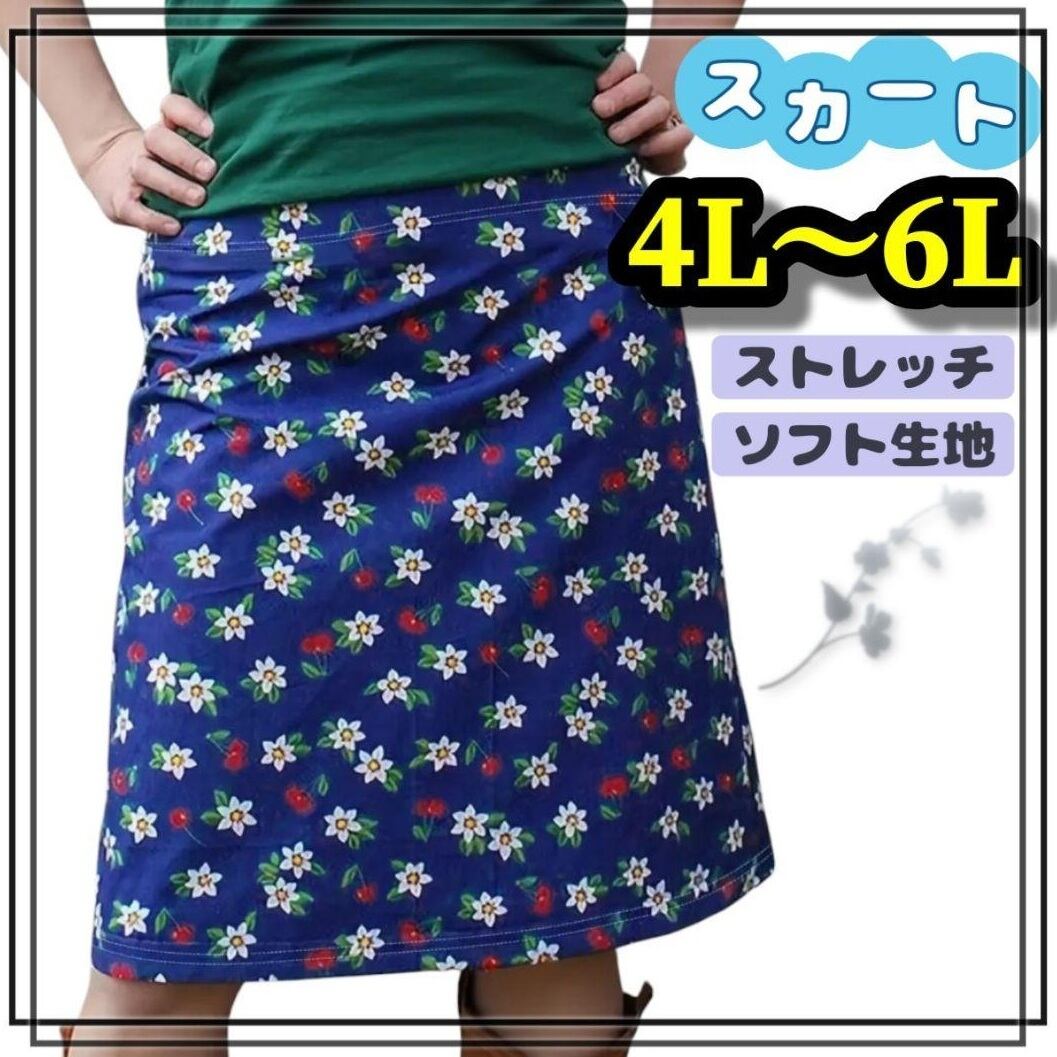 大きいサイズ レディース スカート 台形 ソフト ストレッチ 体型カバー 花柄 フラワー さくらんぼ チェリー 可愛い エスニック カジュアル 3L 4L 5L 6L ぽっちゃり