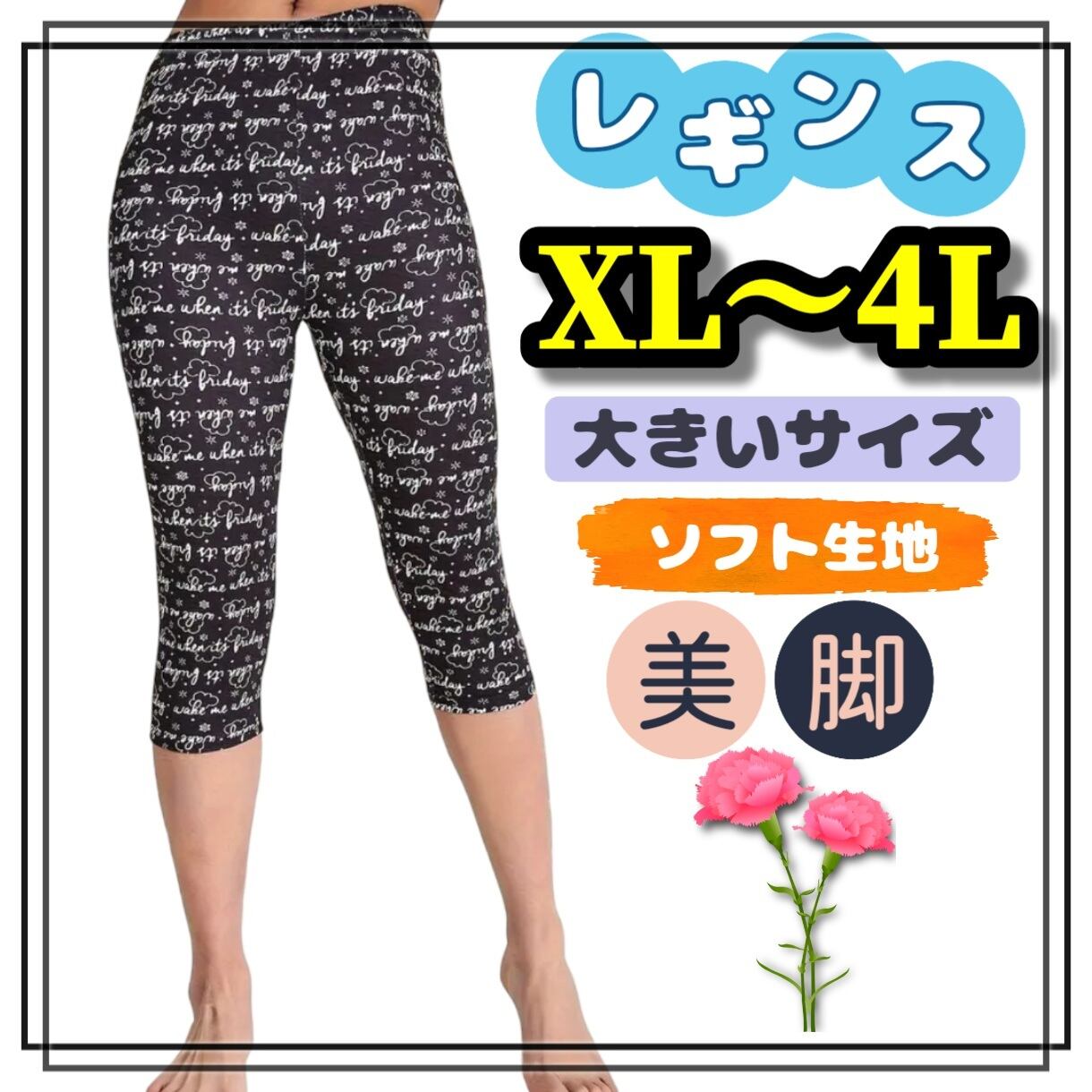 大きいサイズ レディース レギンス スパッツ カプリ 文字 美脚 カジュアル ヒップホップ ストリート ストレッチ XL 3L 4L 柄パンツ 6分丈 ルームウェア インナー 快適 動きやすい