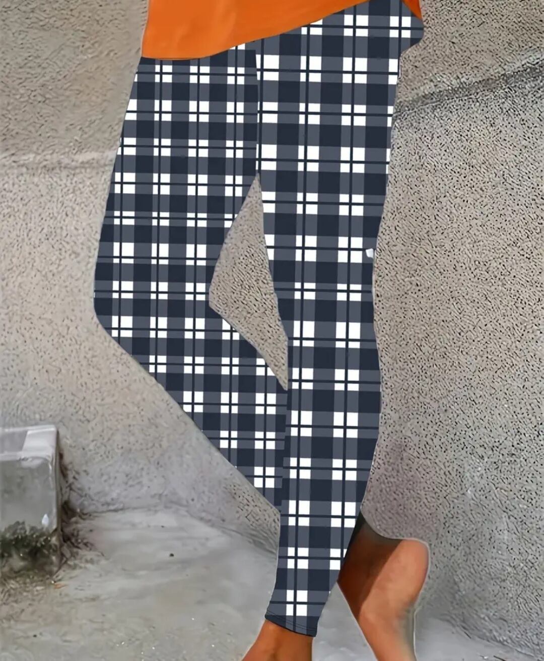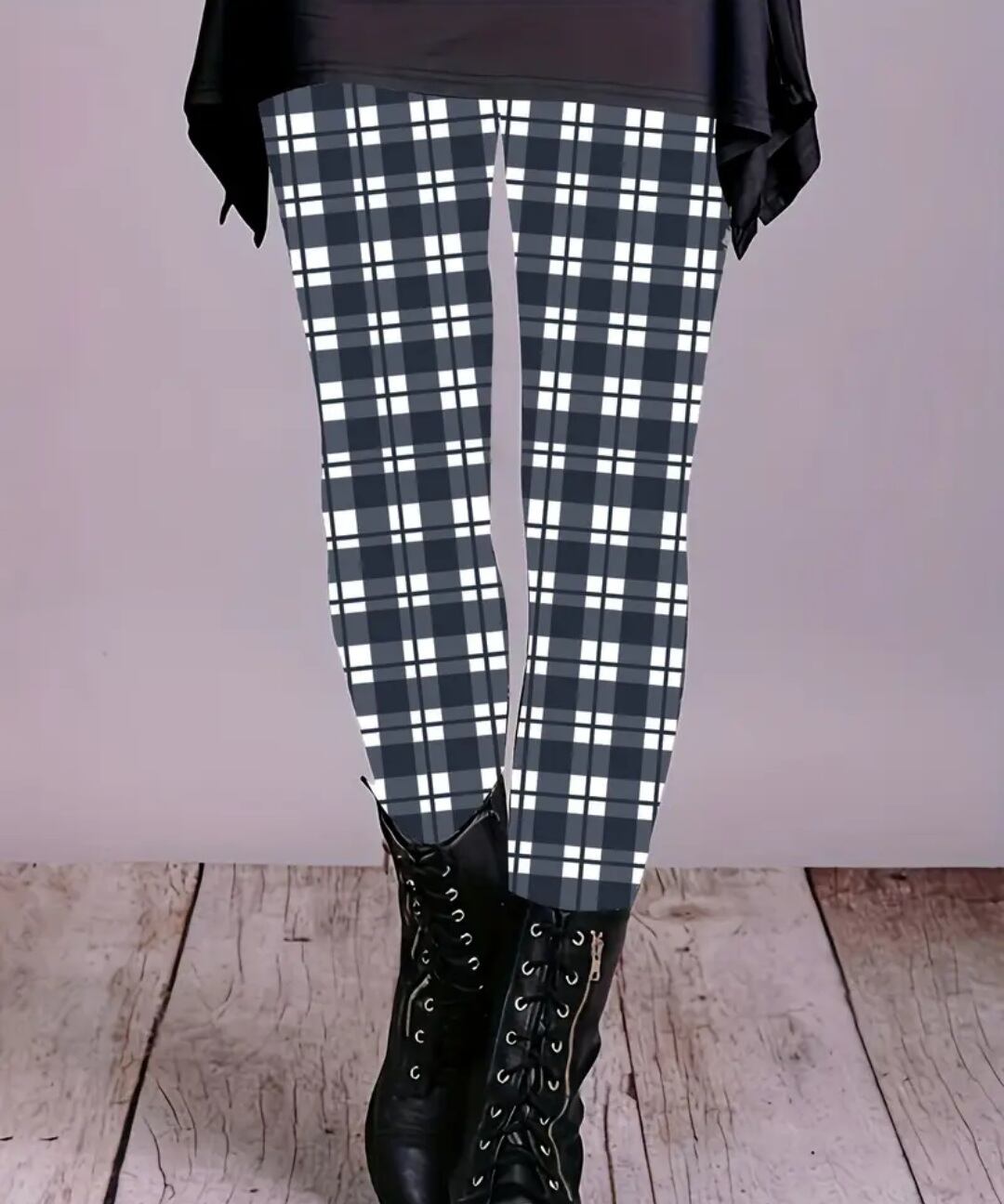 大きいサイズ レディース レギンス スパッツ チェック カジュアル 美脚 ストレッチ スキニー ヒップホップ ストリート 柄パンツ ロング 3L 4L 5L ぽっちゃり プラスサイズ