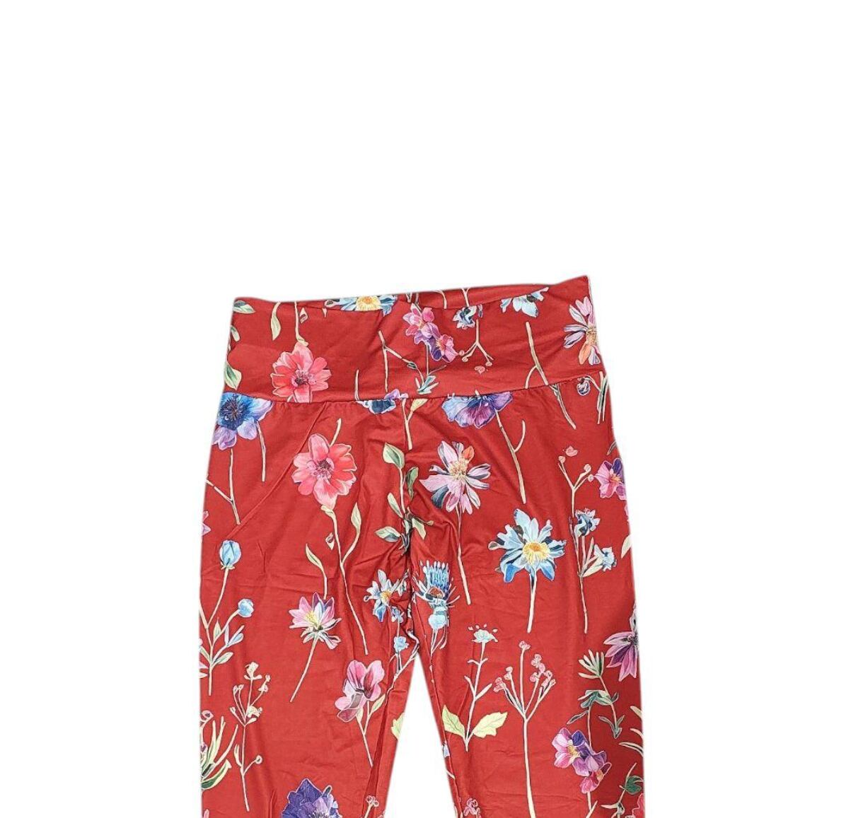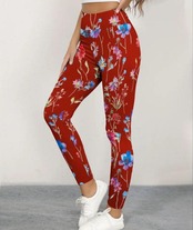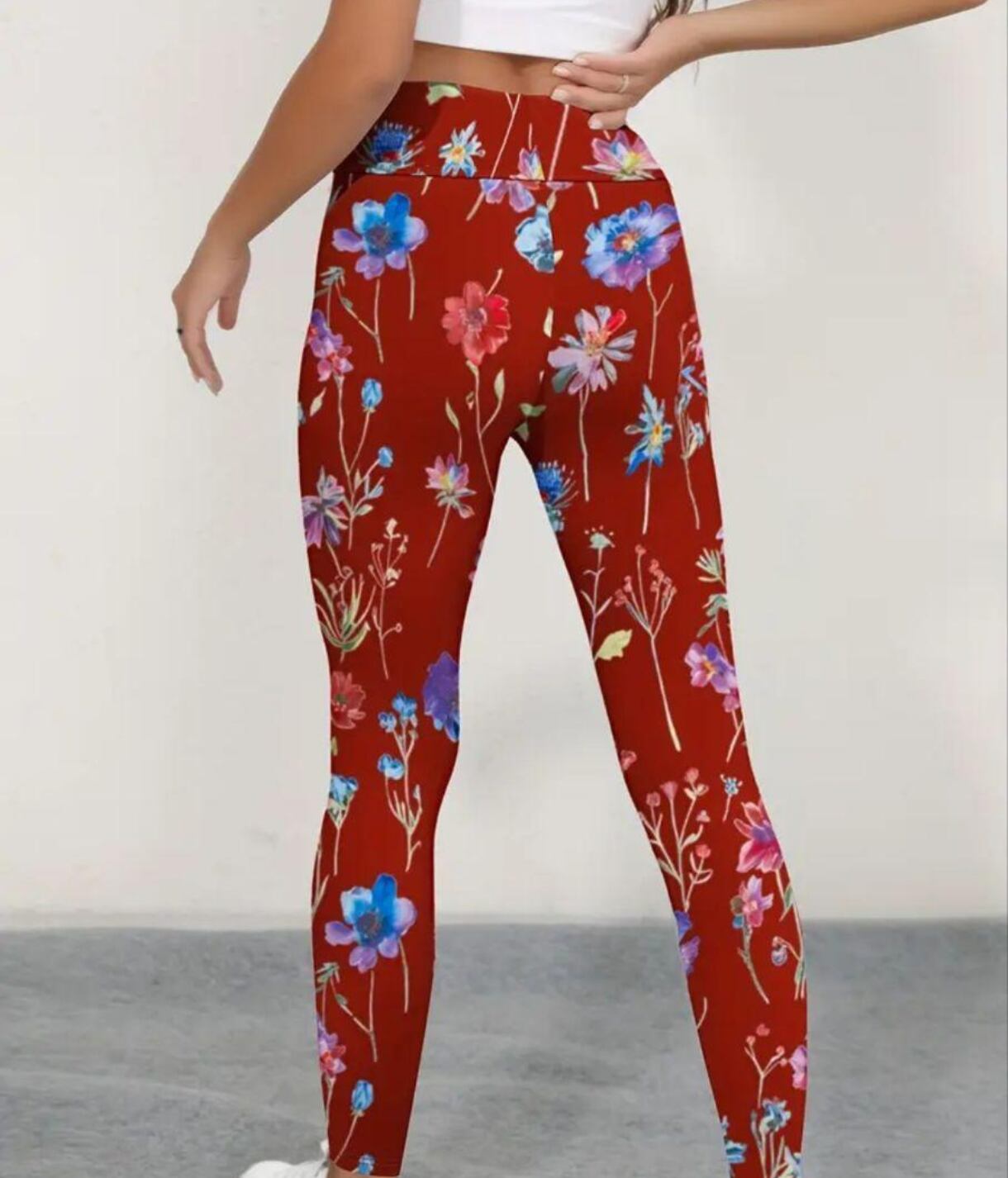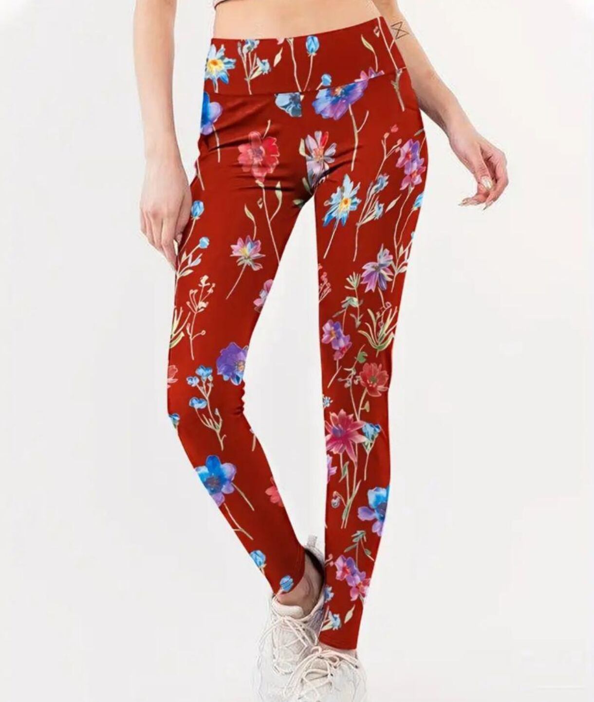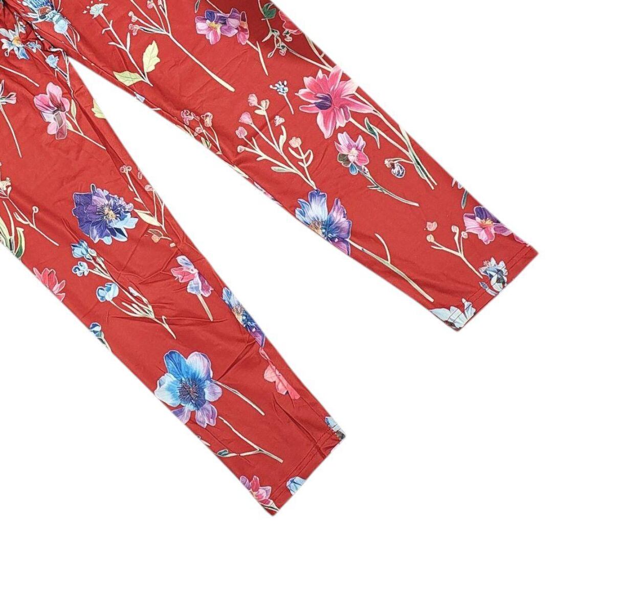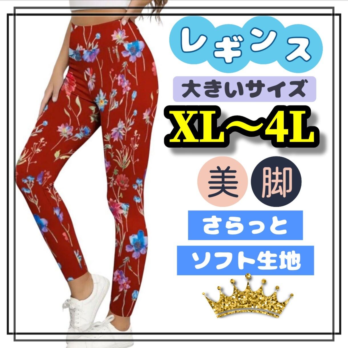 大きいサイズ レディース レギンス スパッツ 赤 花柄 美脚 柄パンツ ヨガ フィットネス スポーツ ルームウェア XL 3L 4L ぽっちゃり トレーニング