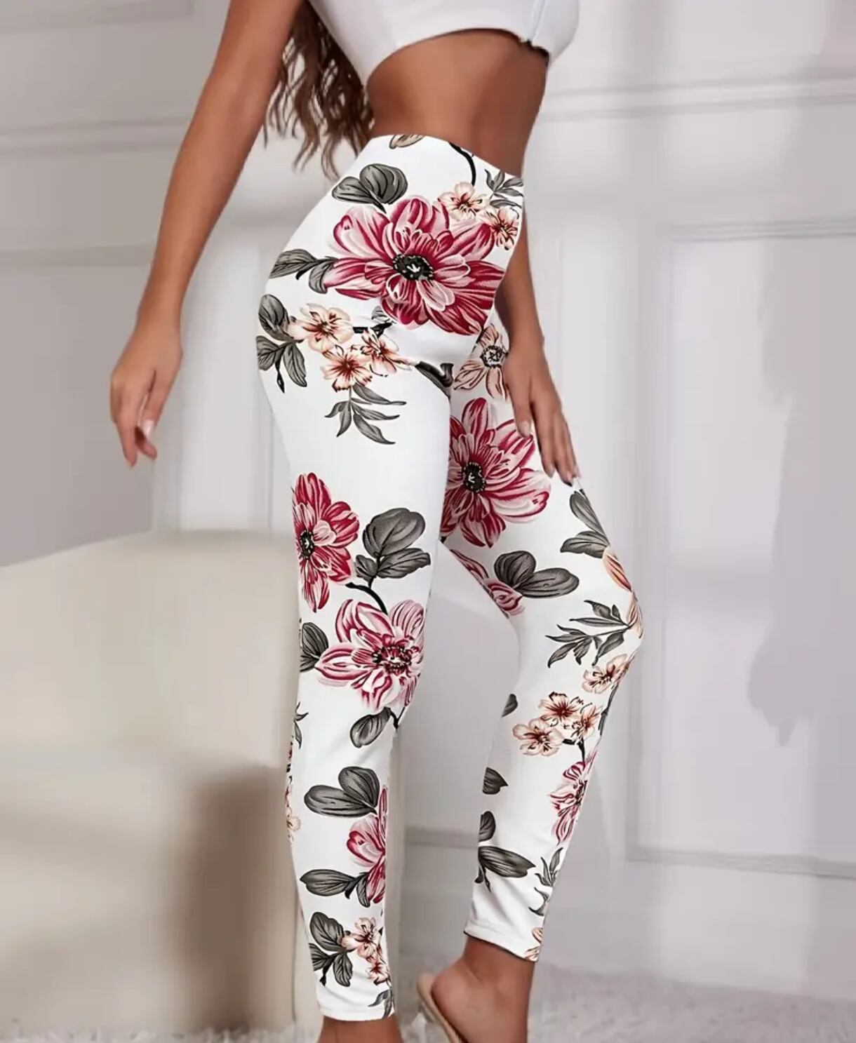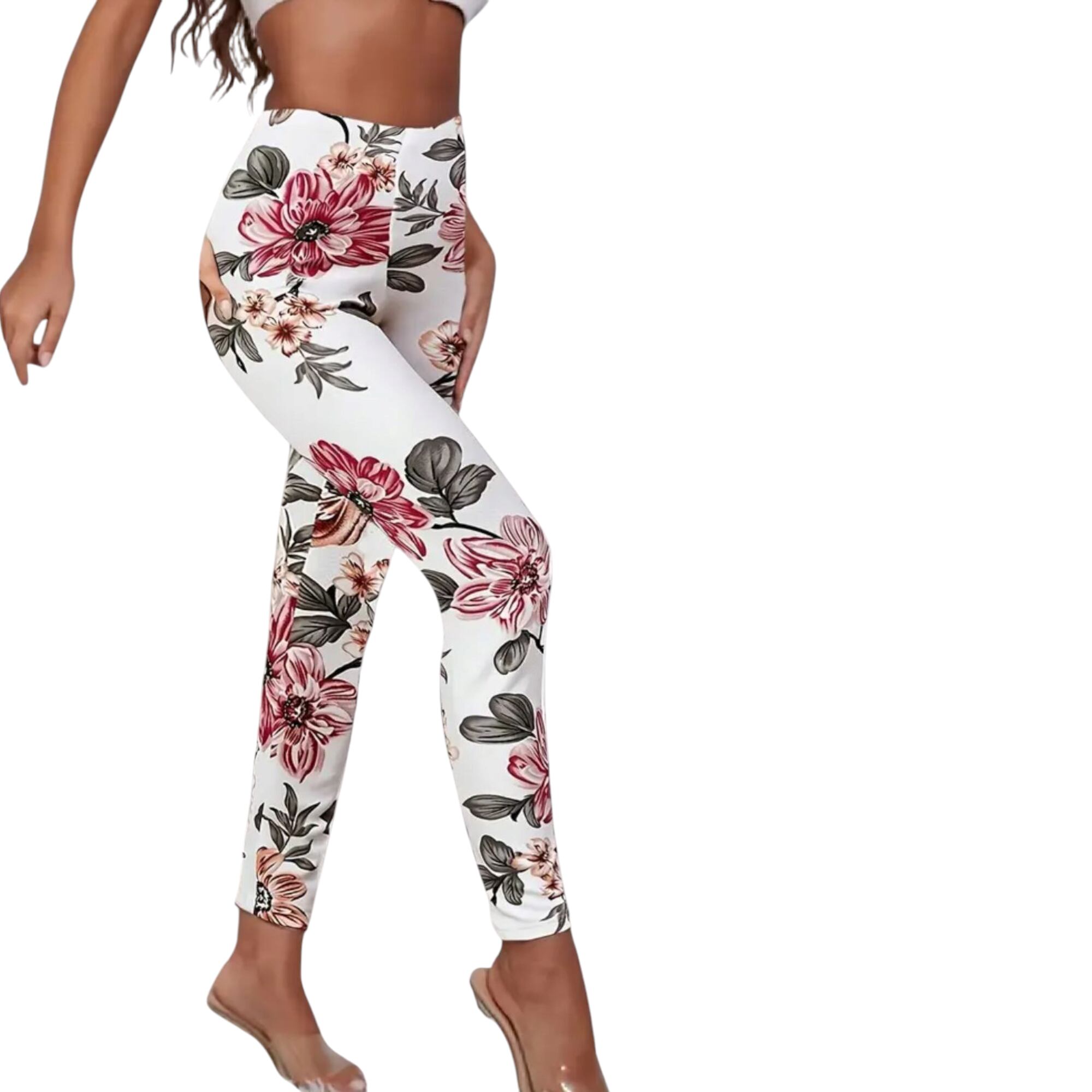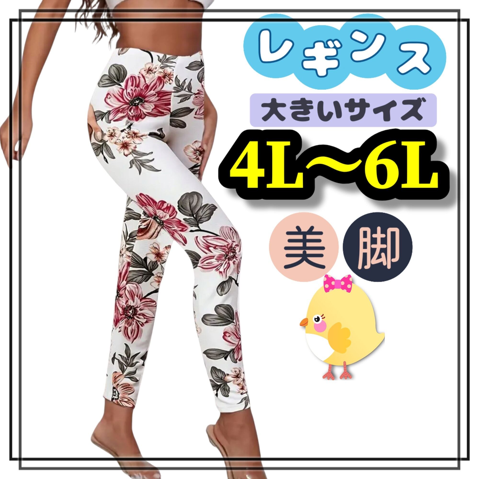 大きいサイズ レディース レギンス スパッツ 花柄 白 美脚 ソフト ロング 柄パンツ エレガント インナー ルームウェア 4L 5L 6L スキニー ヨガ フィットネス ヒップホップ ストリート
