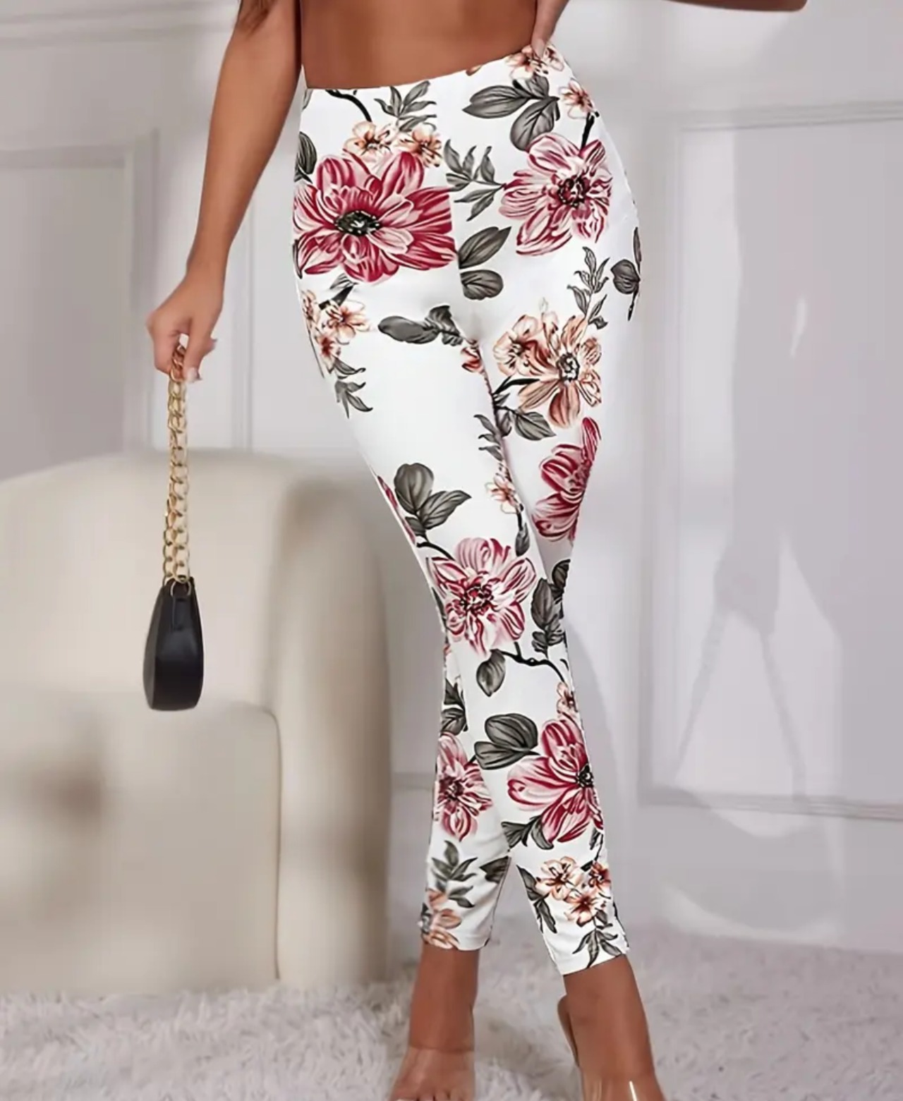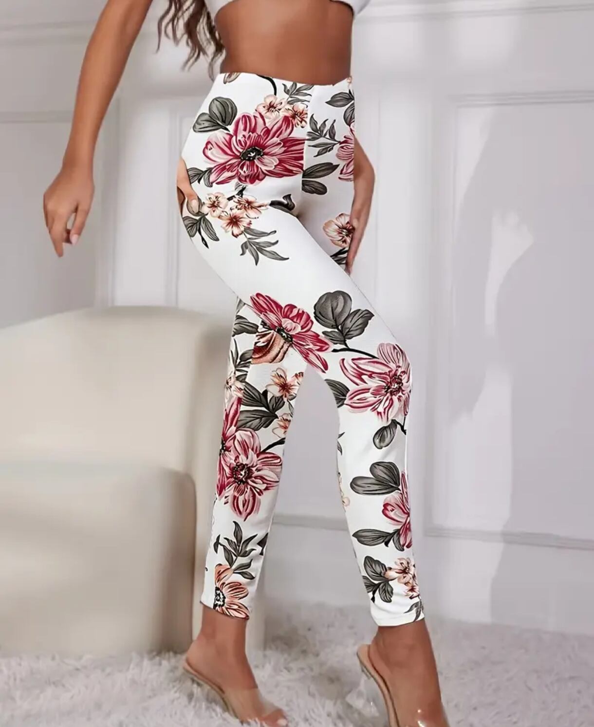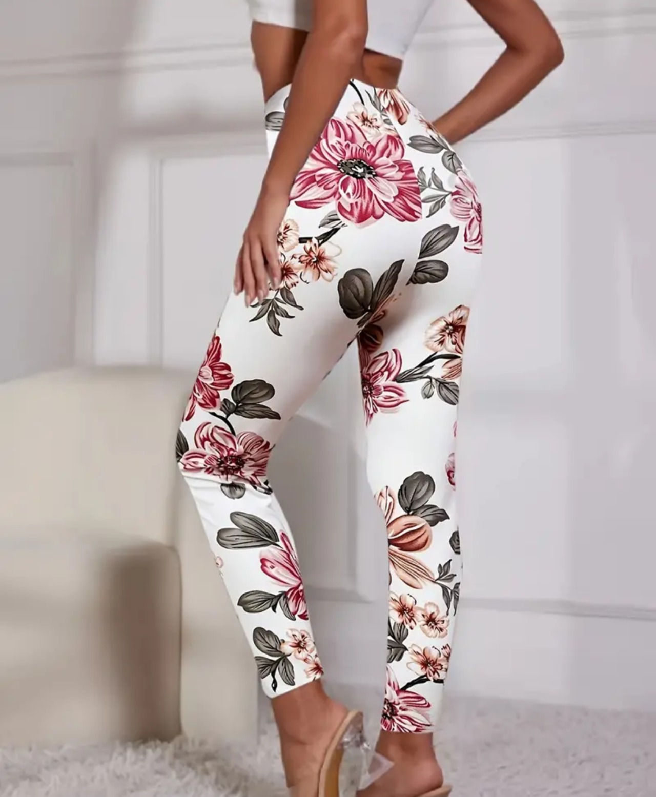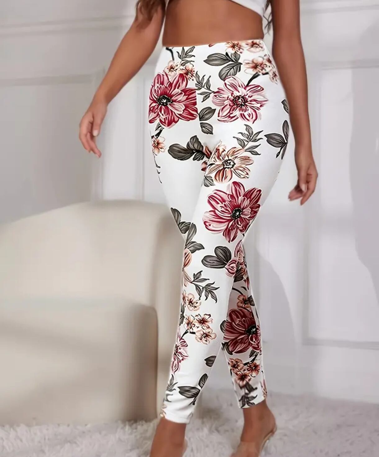 大きいサイズ レディース レギンス スパッツ 花柄 白 美脚 ソフト ロング 柄パンツ エレガント インナー ルームウェア 4L 5L 6L スキニー ヨガ フィットネス ヒップホップ ストリート