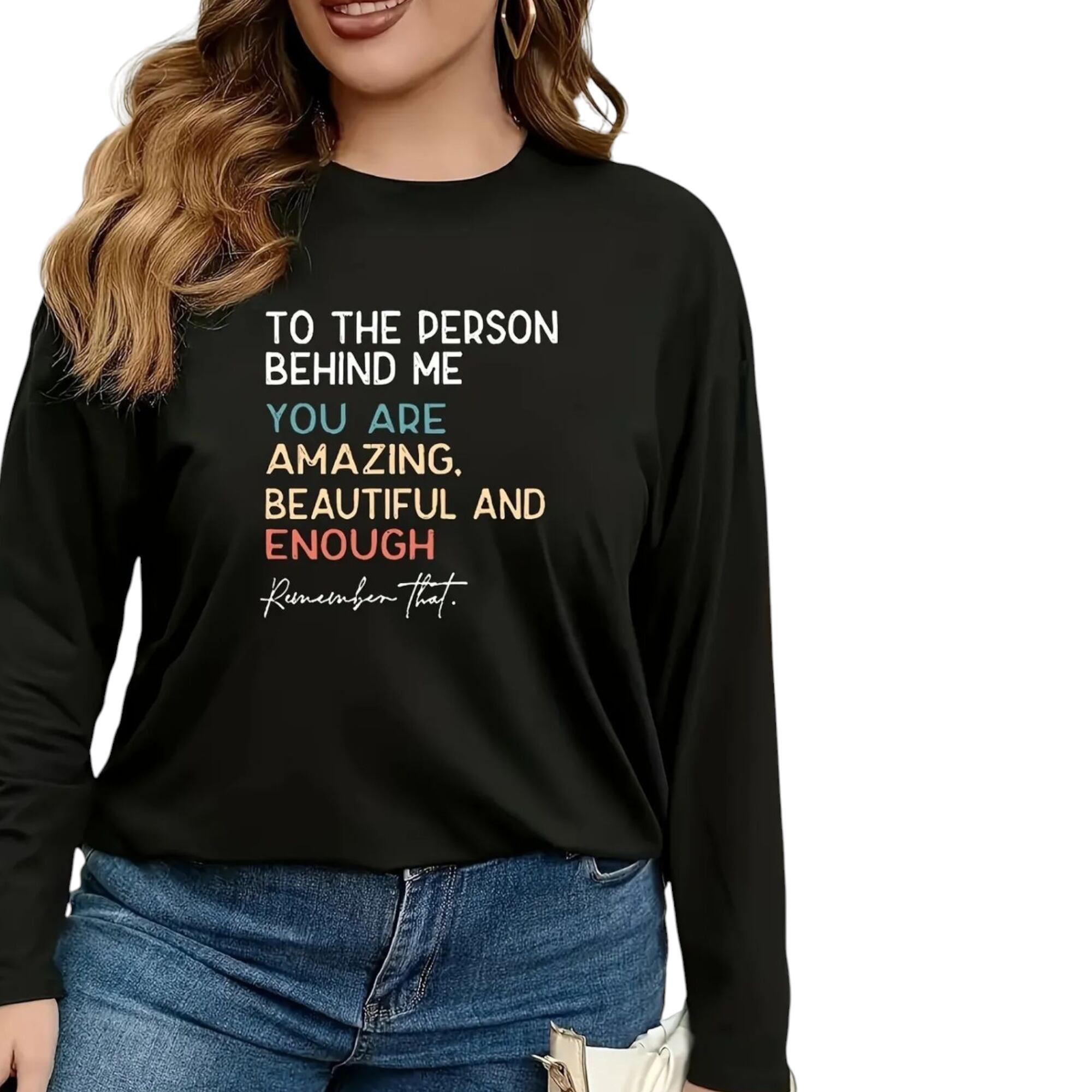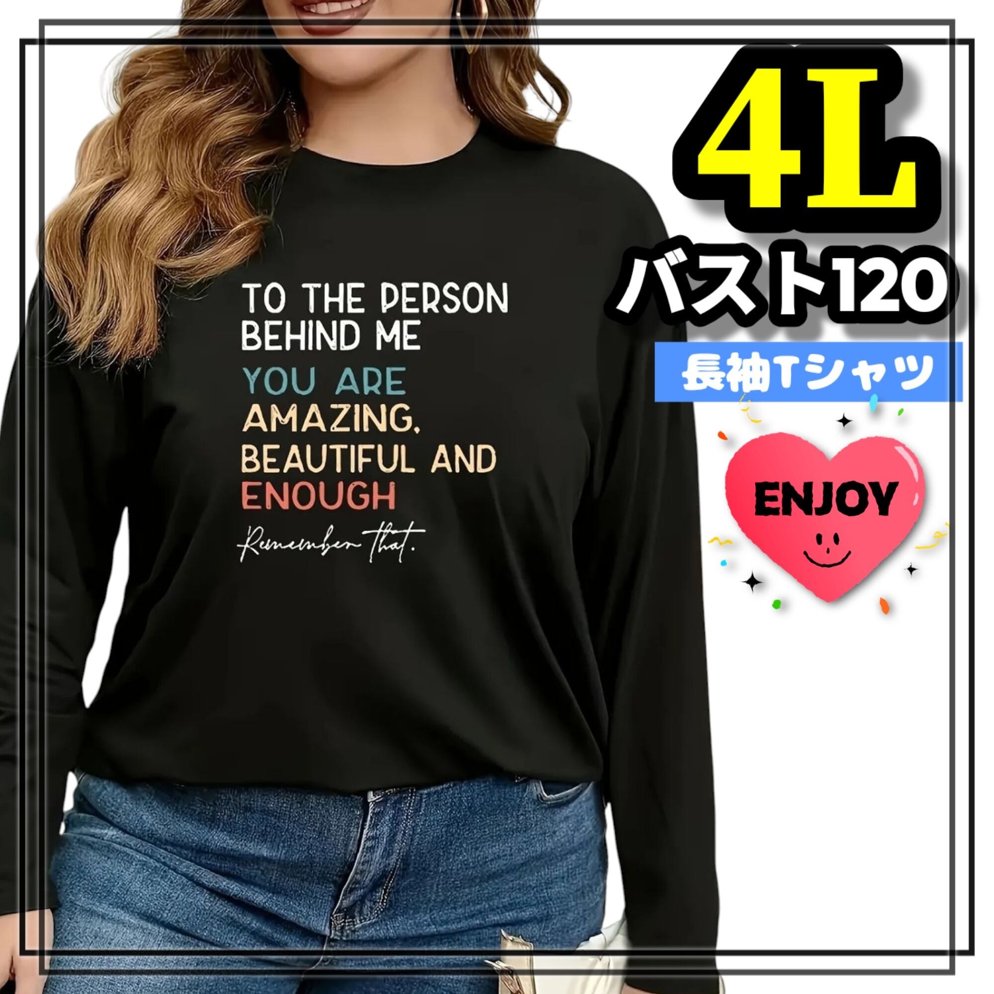 大きいサイズ レディース トップス 長袖 Tシャツ 文字 カジュアル ヒップホップ ストリート スタイリッシュ ブラック 3L 4L 5L オーバーサイズ プリント ぽっちゃり ストレッチ 快適 インナー メッセージ