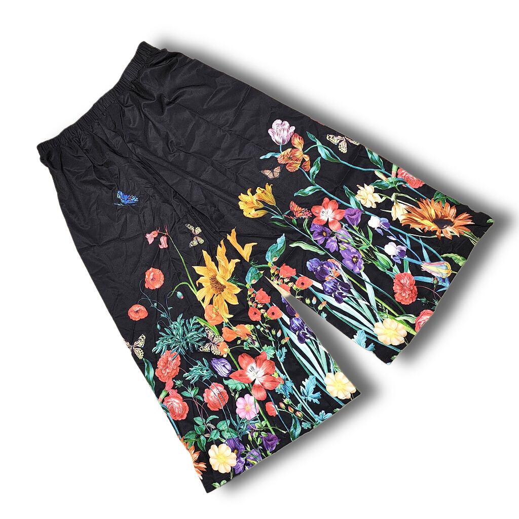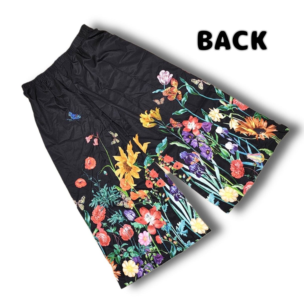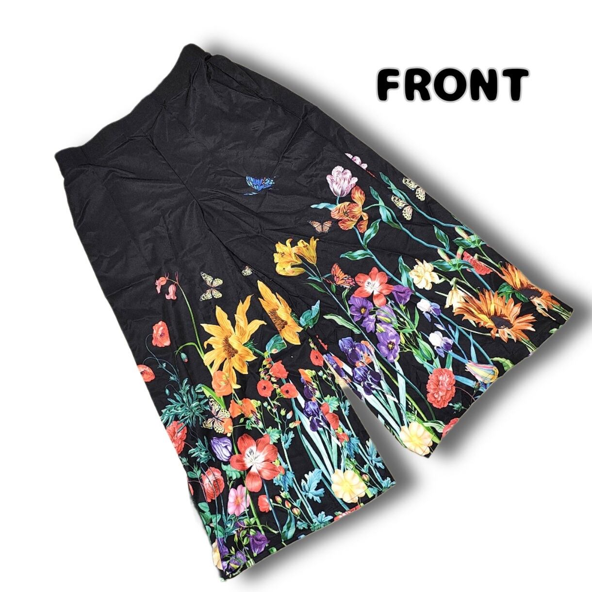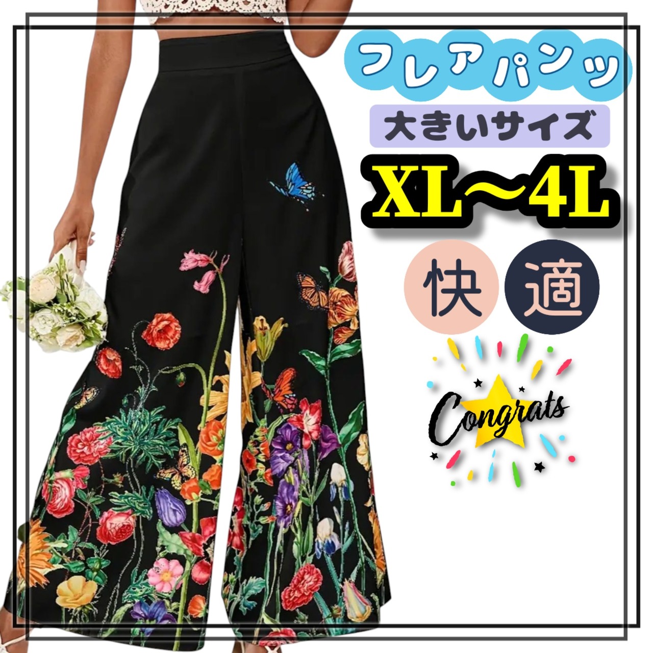 大きいサイズ レディース ボトムス パンツ フレア ガウチョ XL 3L 4L 花柄 バタフライ 黒 ぽっちゃり 快適