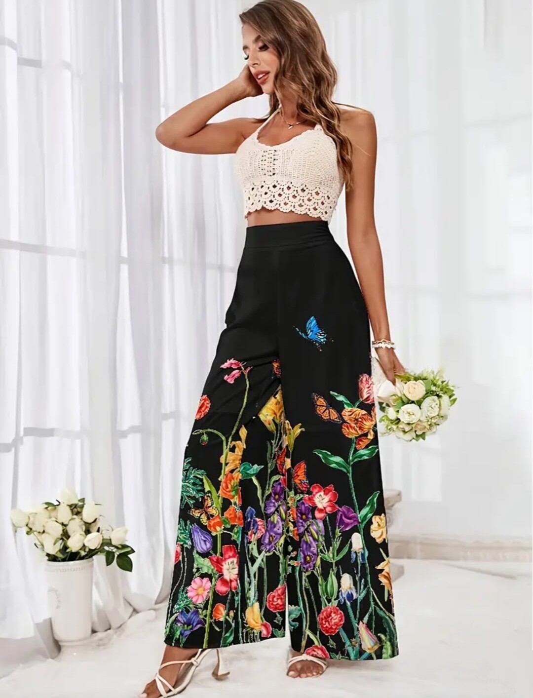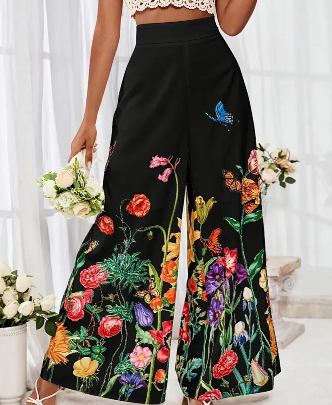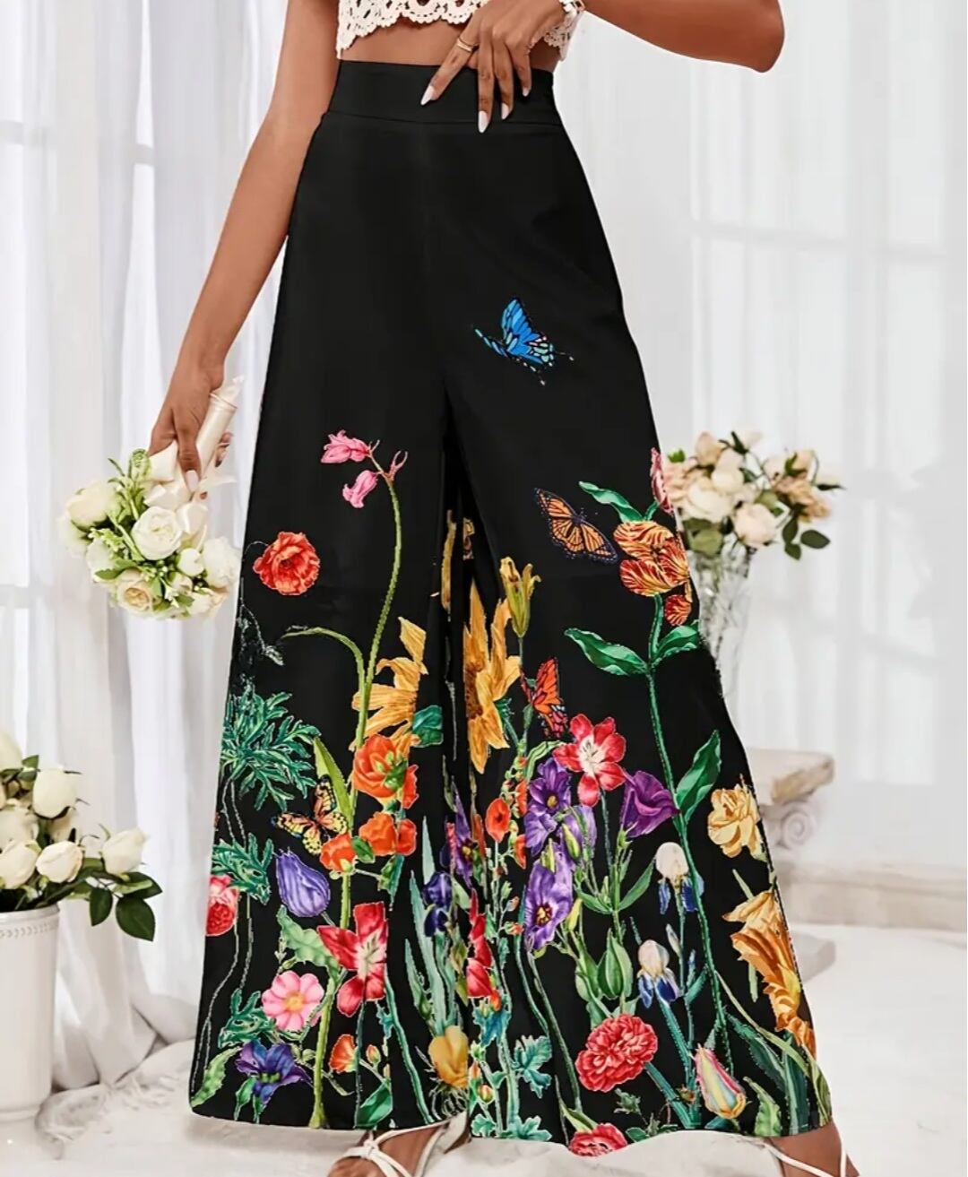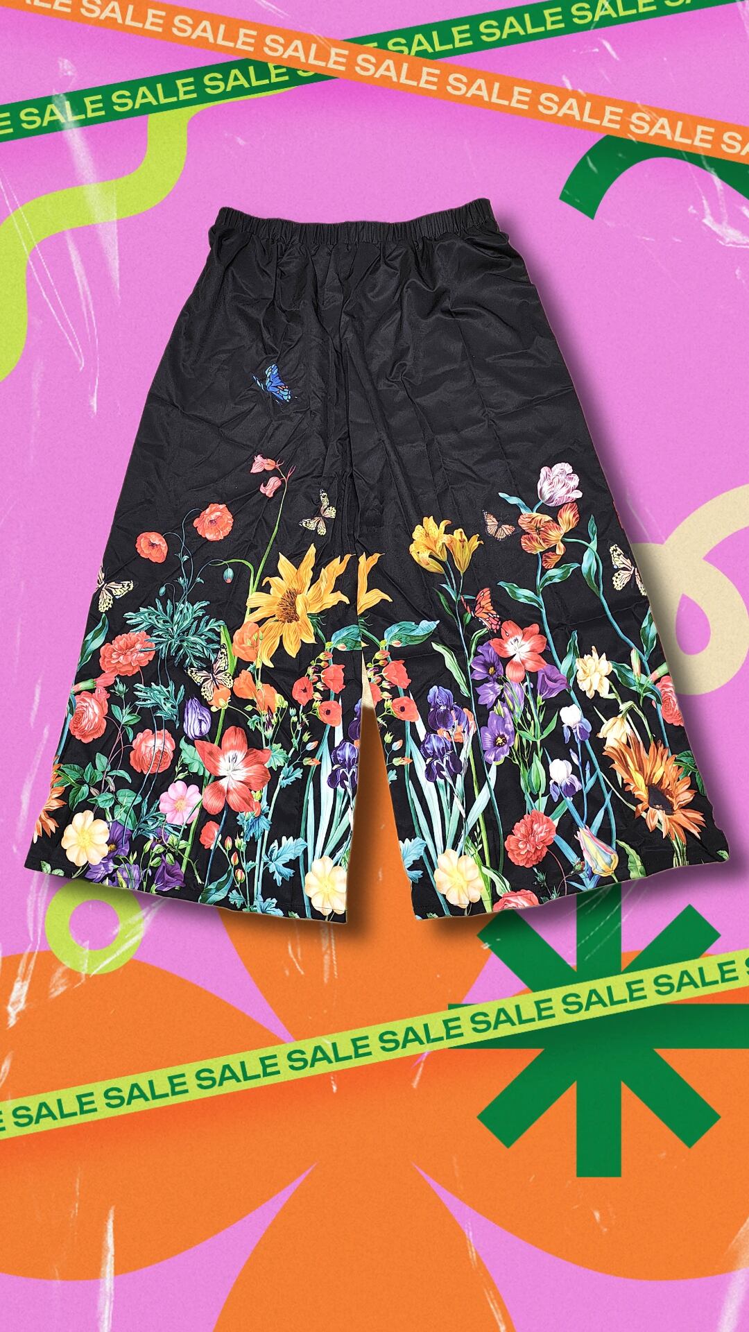 大きいサイズ レディース ボトムス パンツ フレア ガウチョ XL 3L 4L 花柄 バタフライ 黒 ぽっちゃり 快適