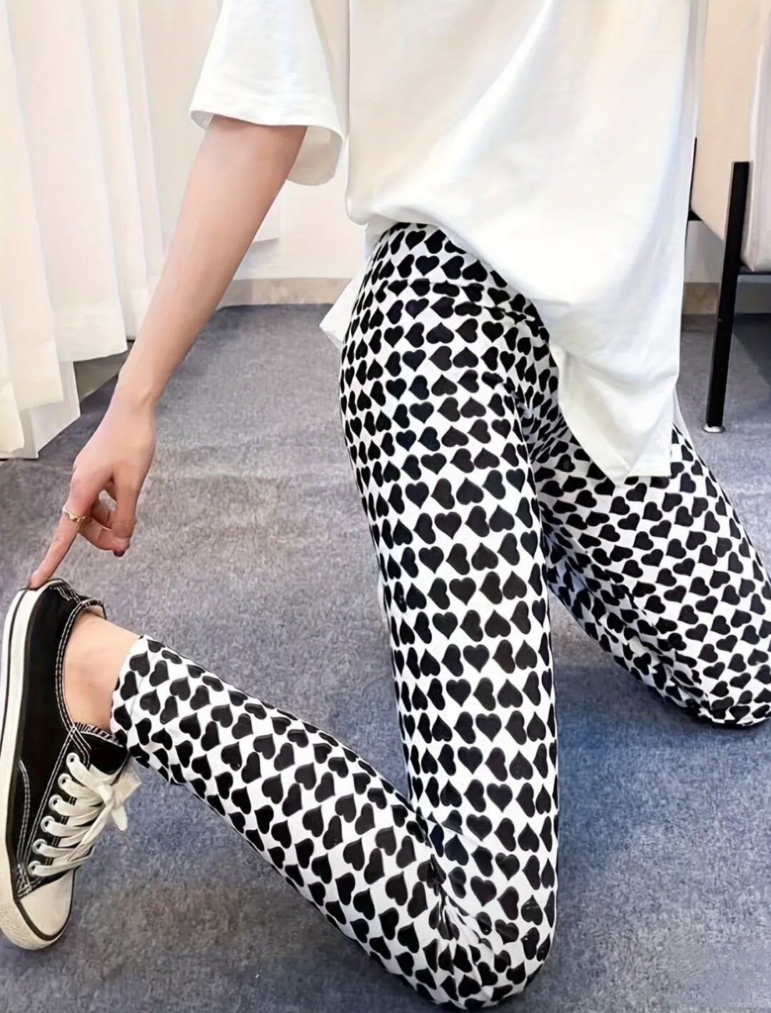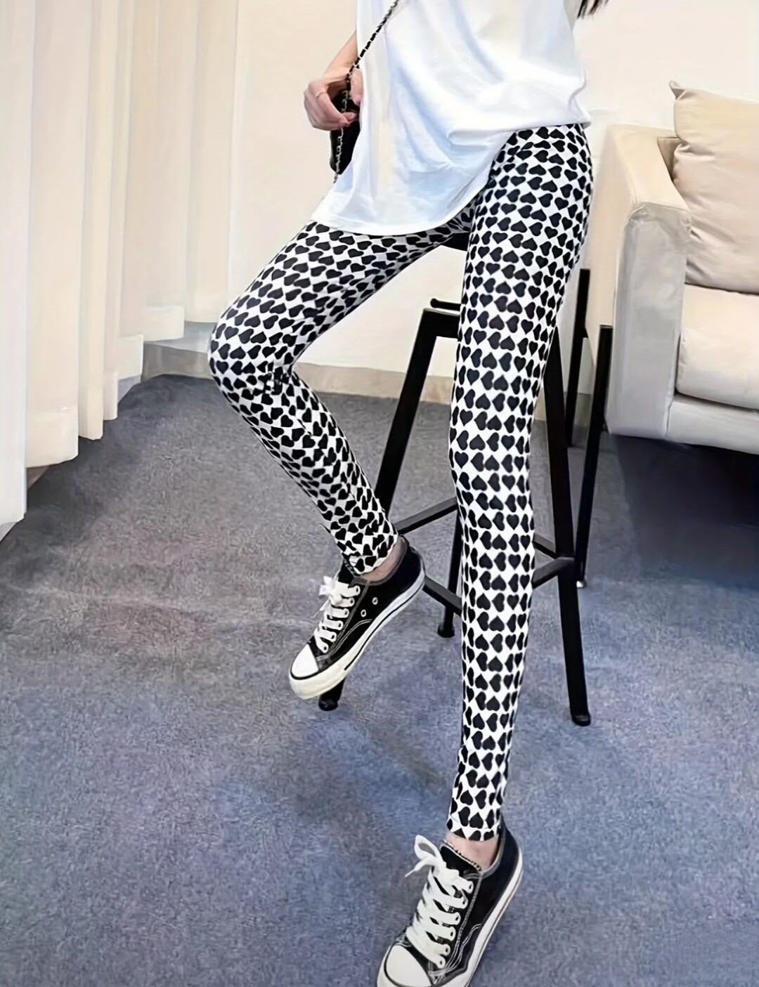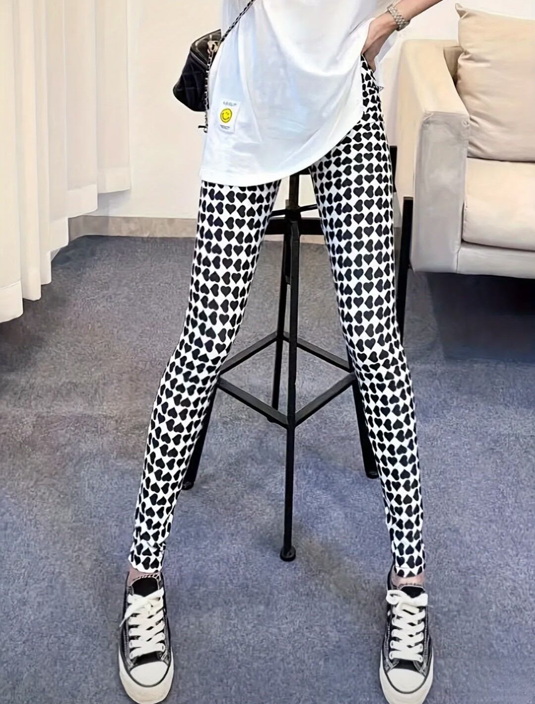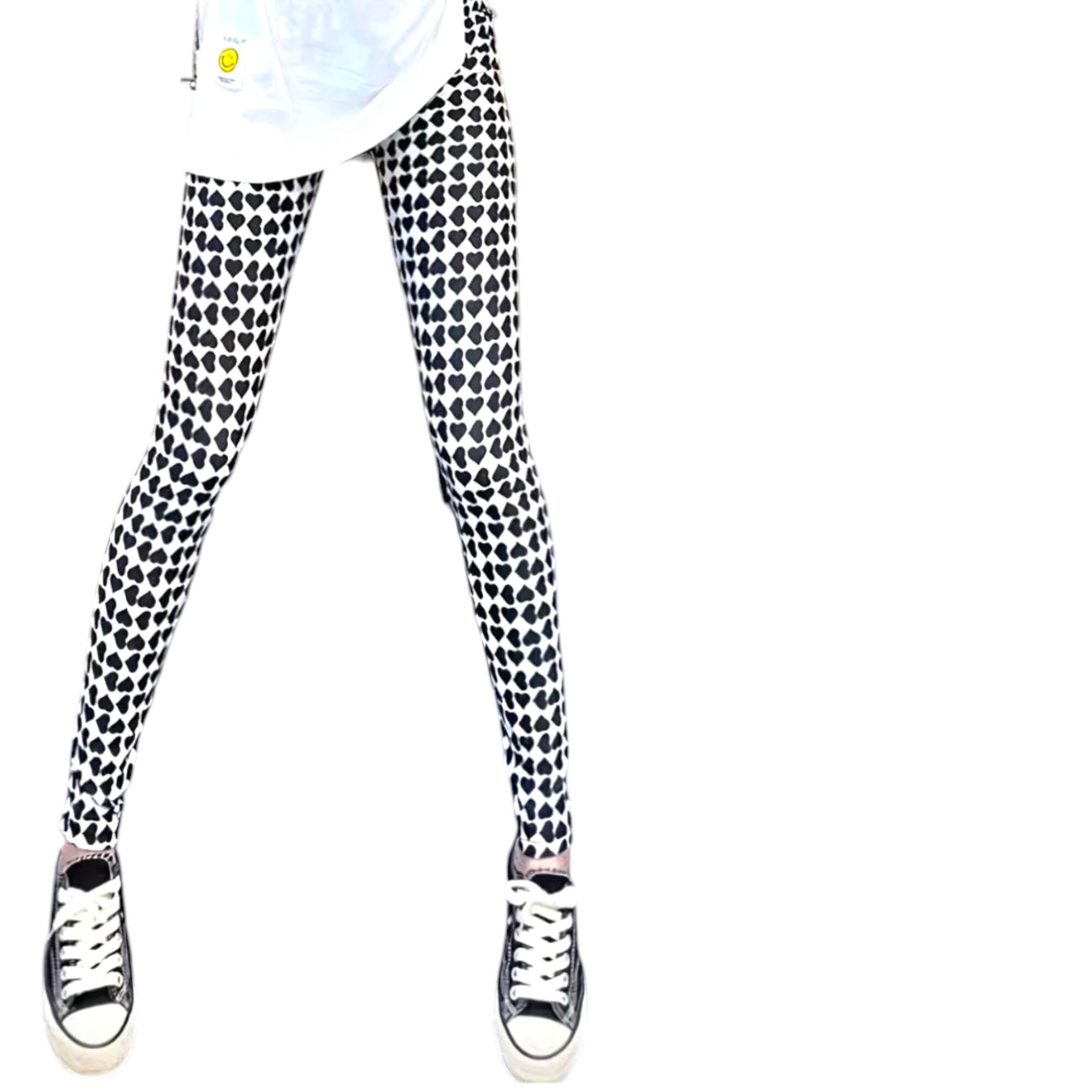 大きいサイズ レディース レギンス スパッツ カジュアル ヒップホップ ストリート ぽっちゃり 白黒 ハート 柄パンツ スキニー ソフト