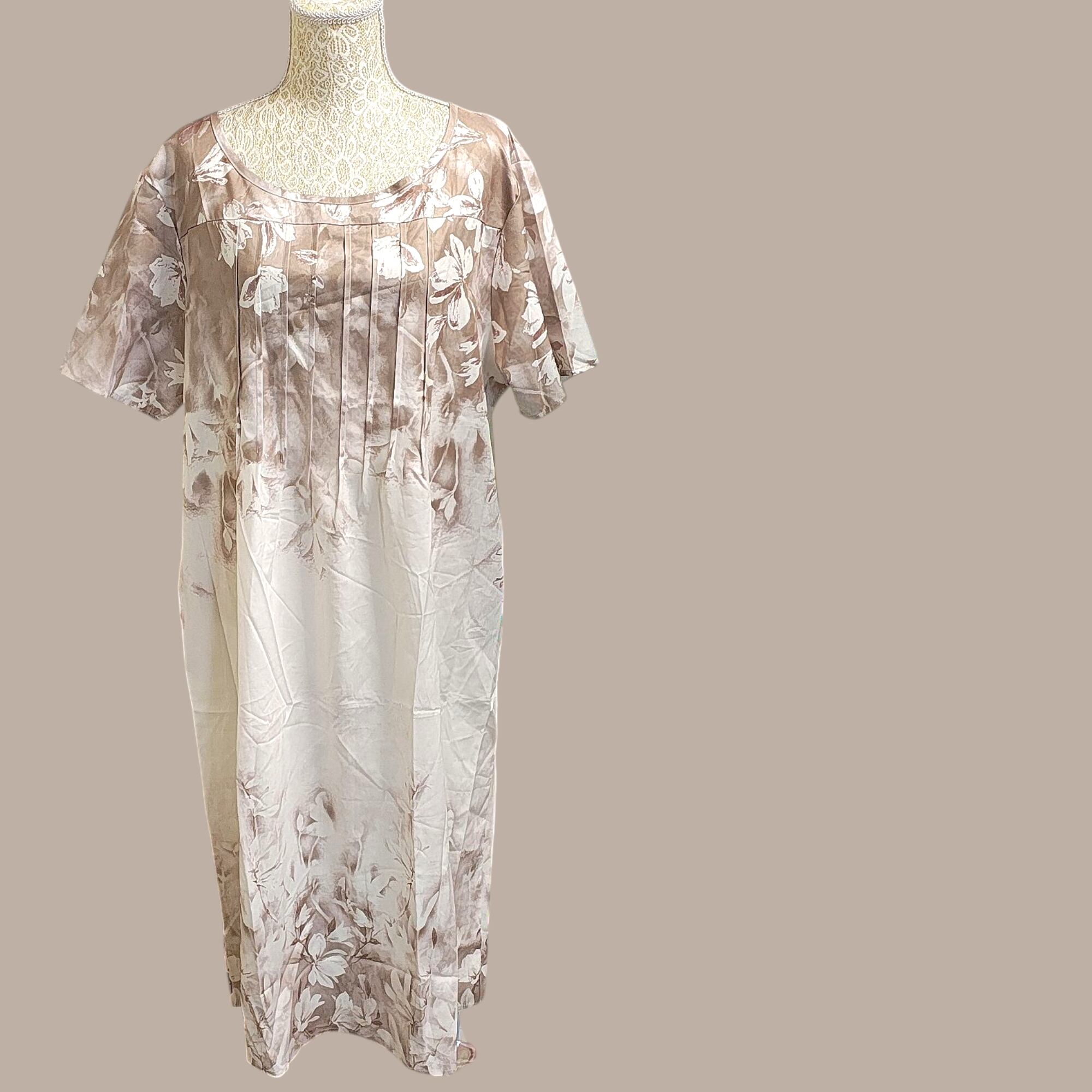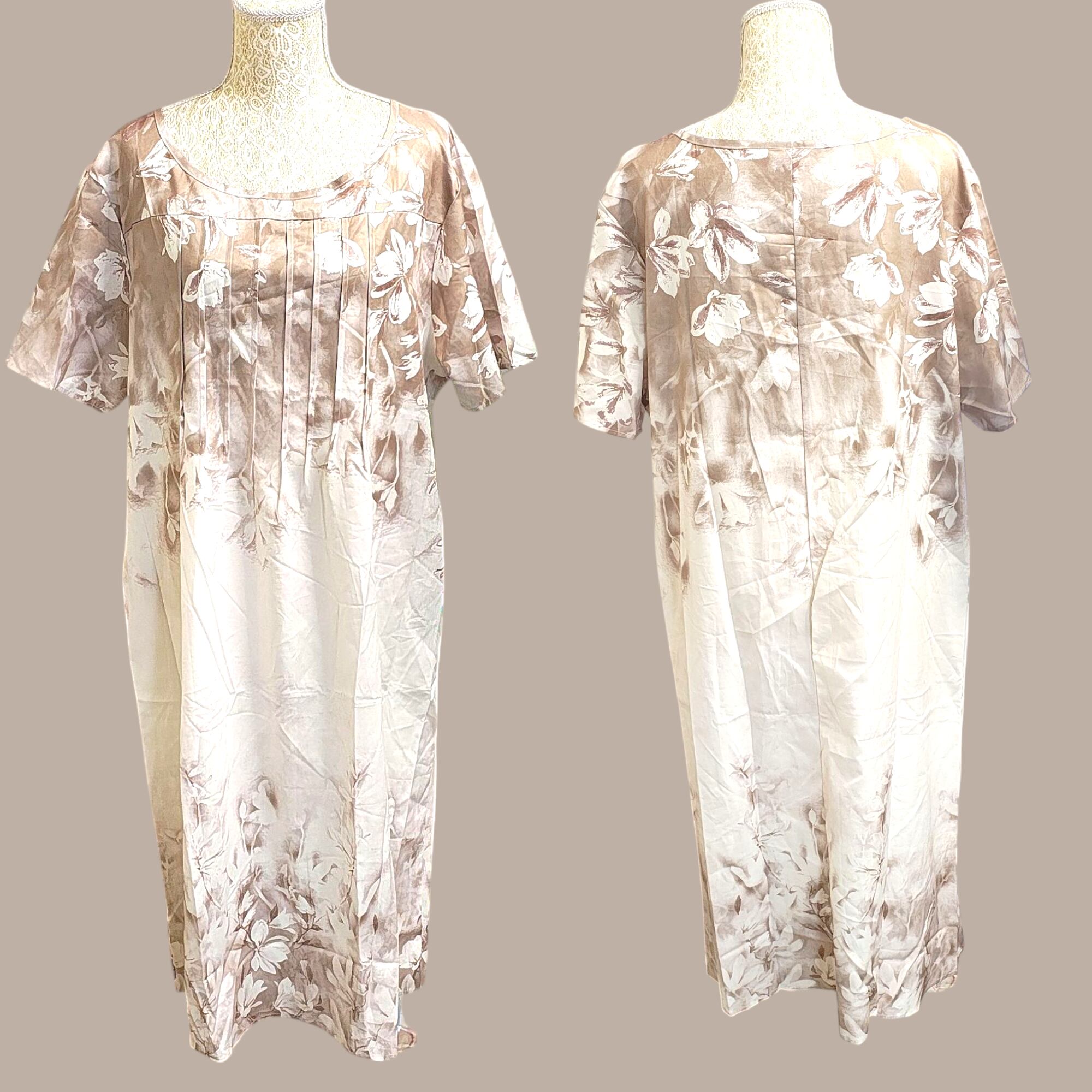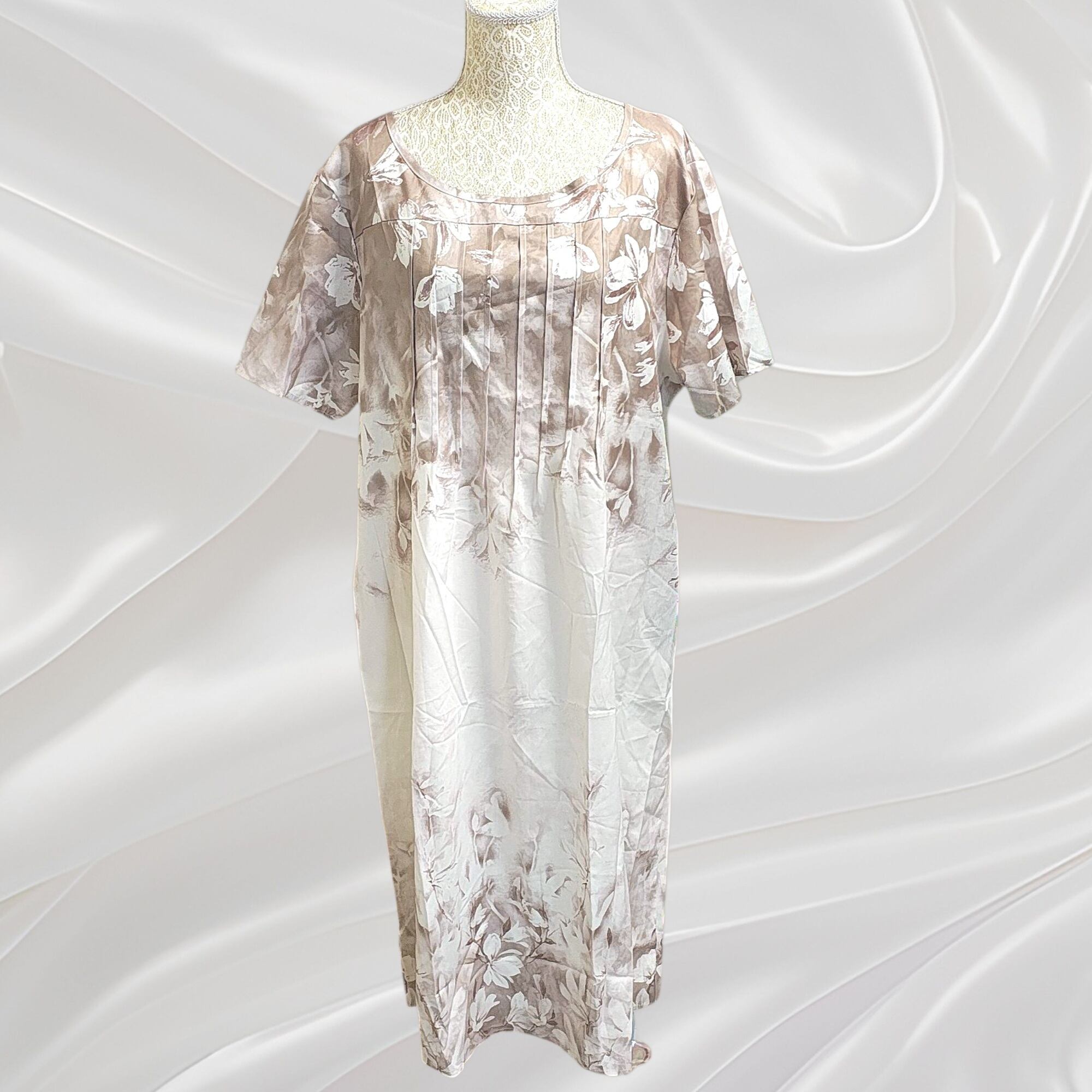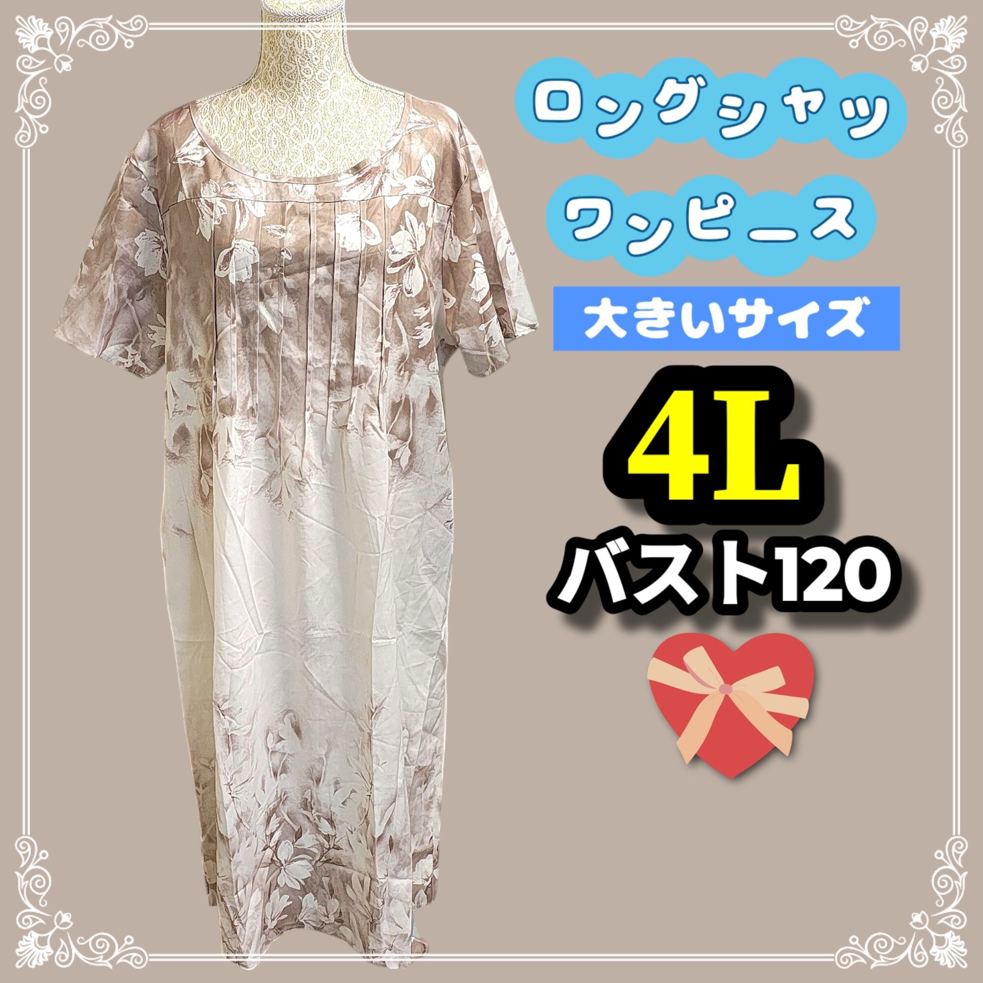 大きいサイズ レディース ワンピース 半袖 シャツ ロング 花柄 ブラウン エレガント 4L 3L 柄シャツ ゆったり ルームウェア ぽっちゃり 接触冷感 快適 レギンスコーデ エレガント エレガンス フェミニン 体型カバー カジュアル 大人カジュアル