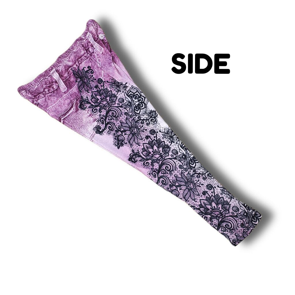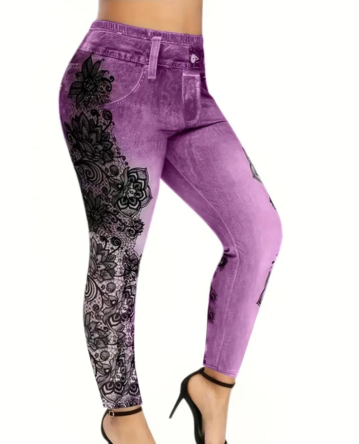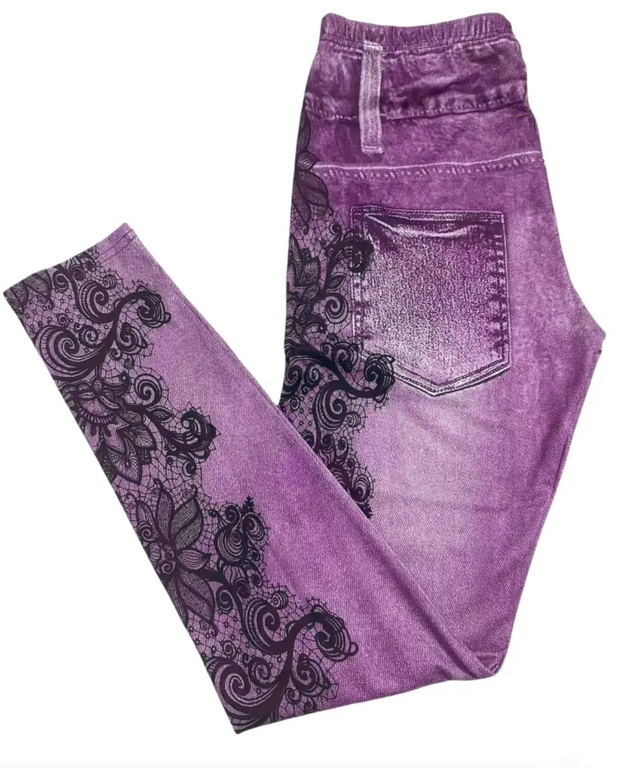 大きいサイズ レディース レギンス スパッツフェイクデニム フェイクパンツ レギンスパンツ レギパン 紫 レース ストレッチ 美脚 カジュアル ロング ゴシック パンク ロック ヒップホップ ストリート 地雷 レース プリント スキニー おしゃれ ぽっちゃり