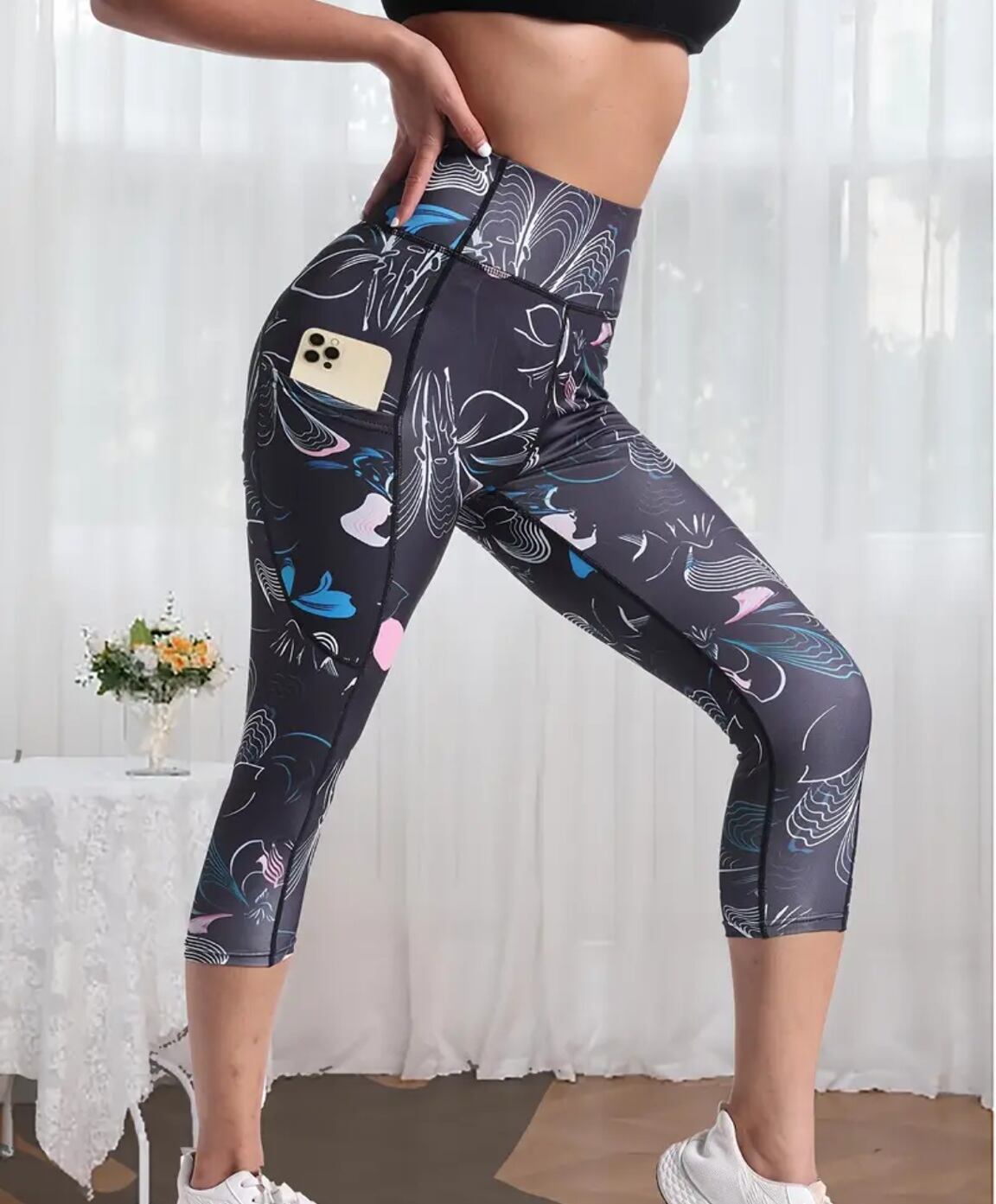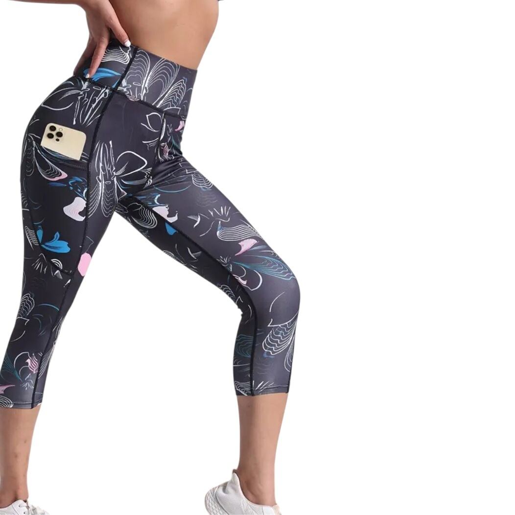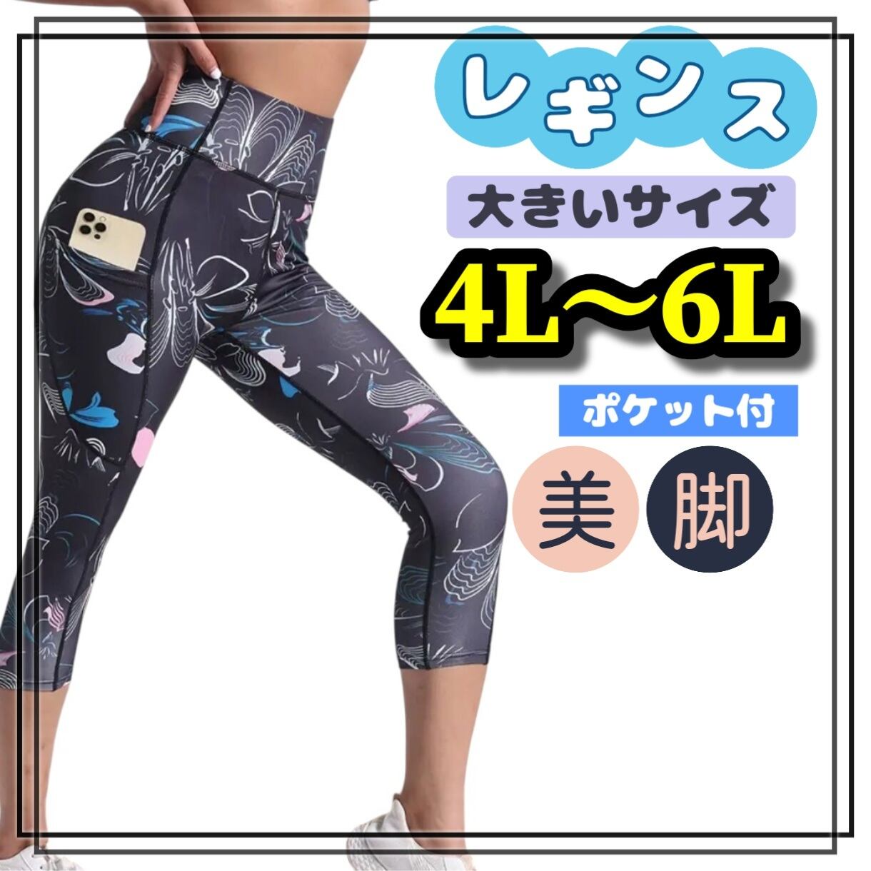 大きいサイズ レディース レギンス スパッツ ヨガ フィットネス トレーニング 6分丈 柄パンツ カプリ ポケット 吸汗速乾 ぽっちゃり インナー ルームウェア 美脚 ストレッチ