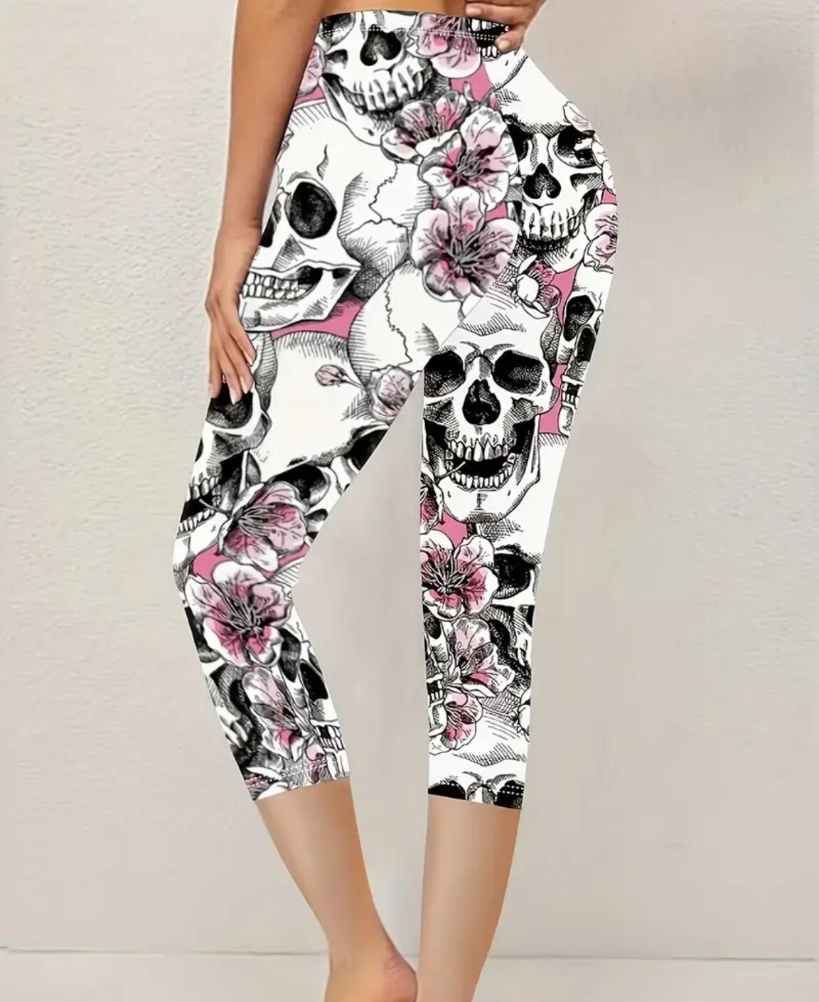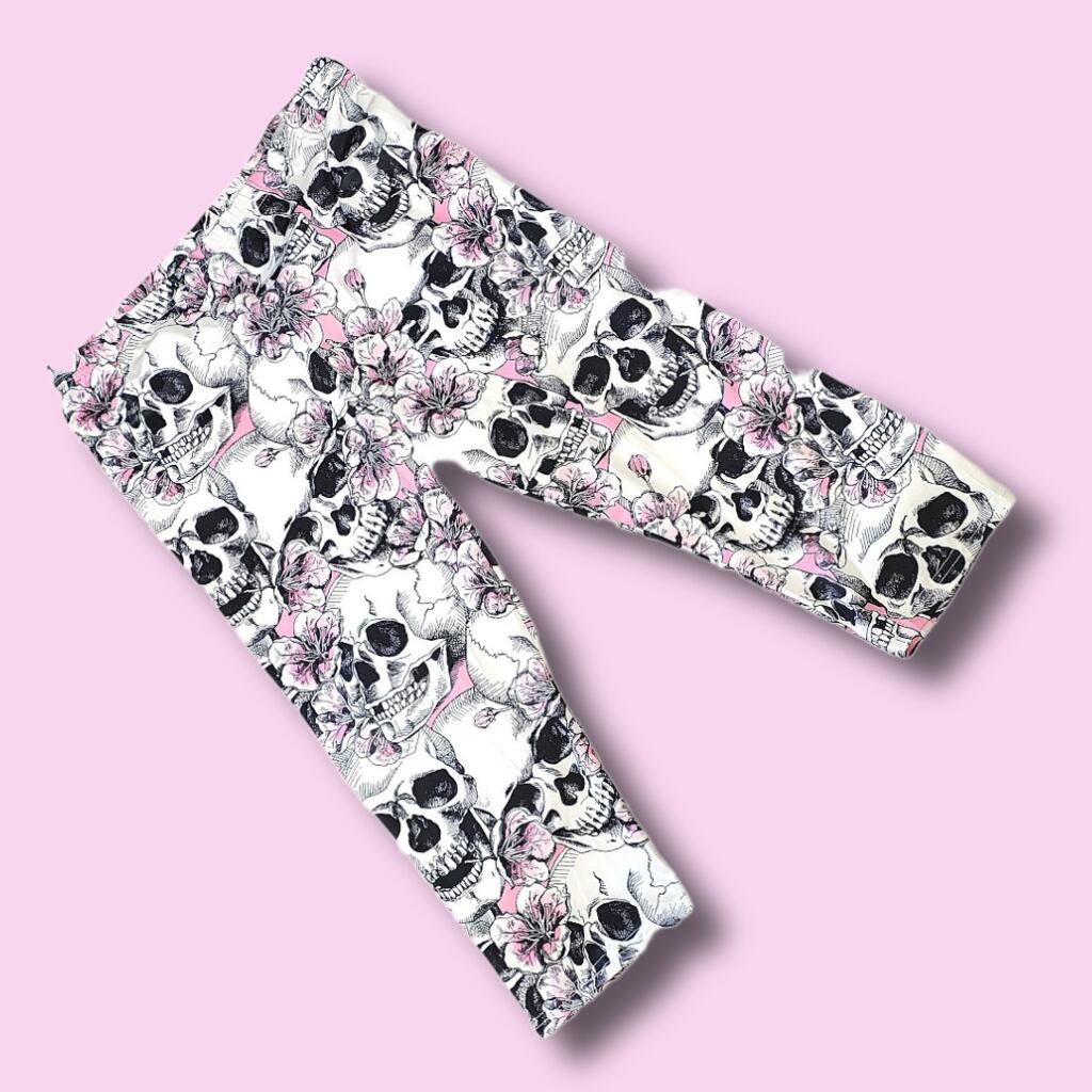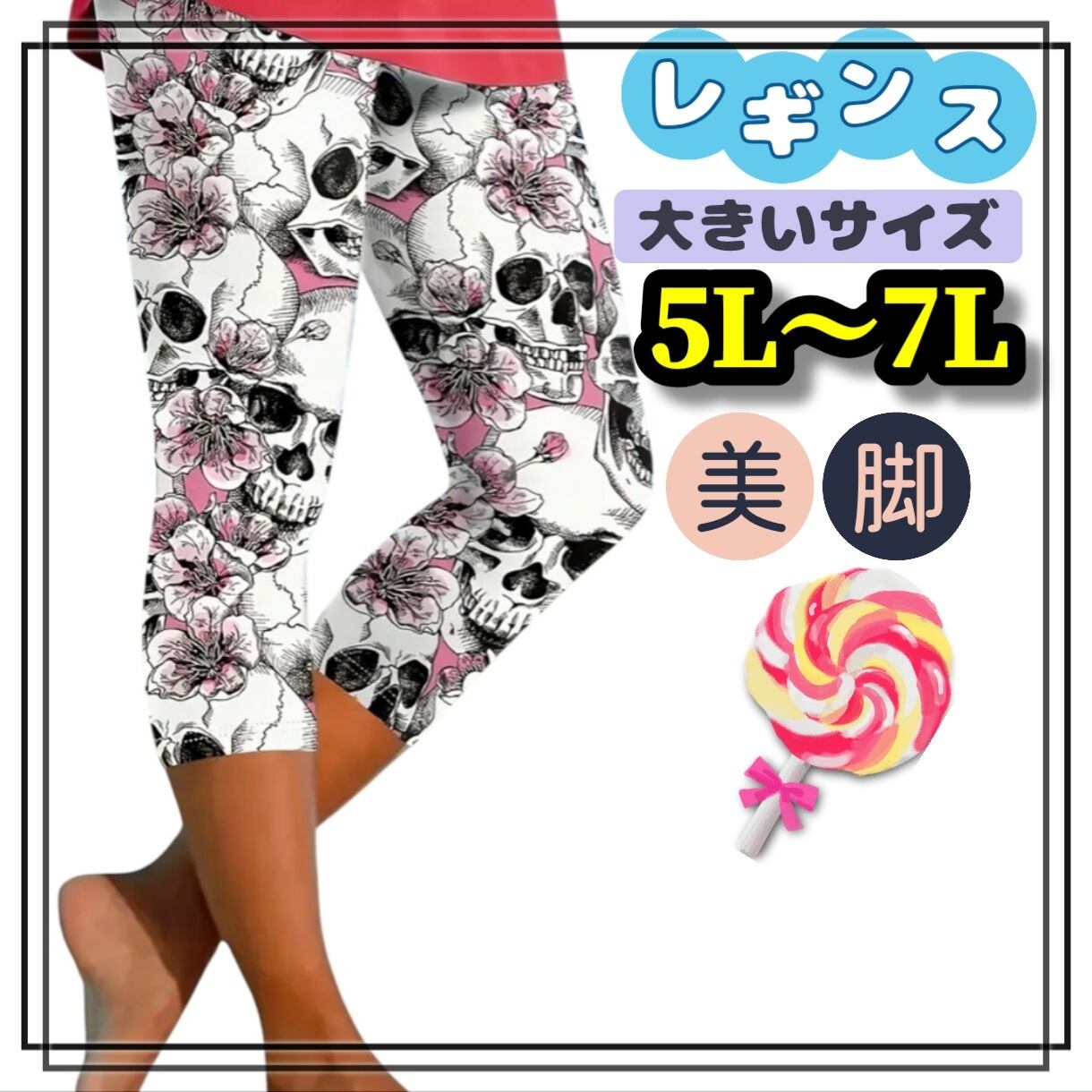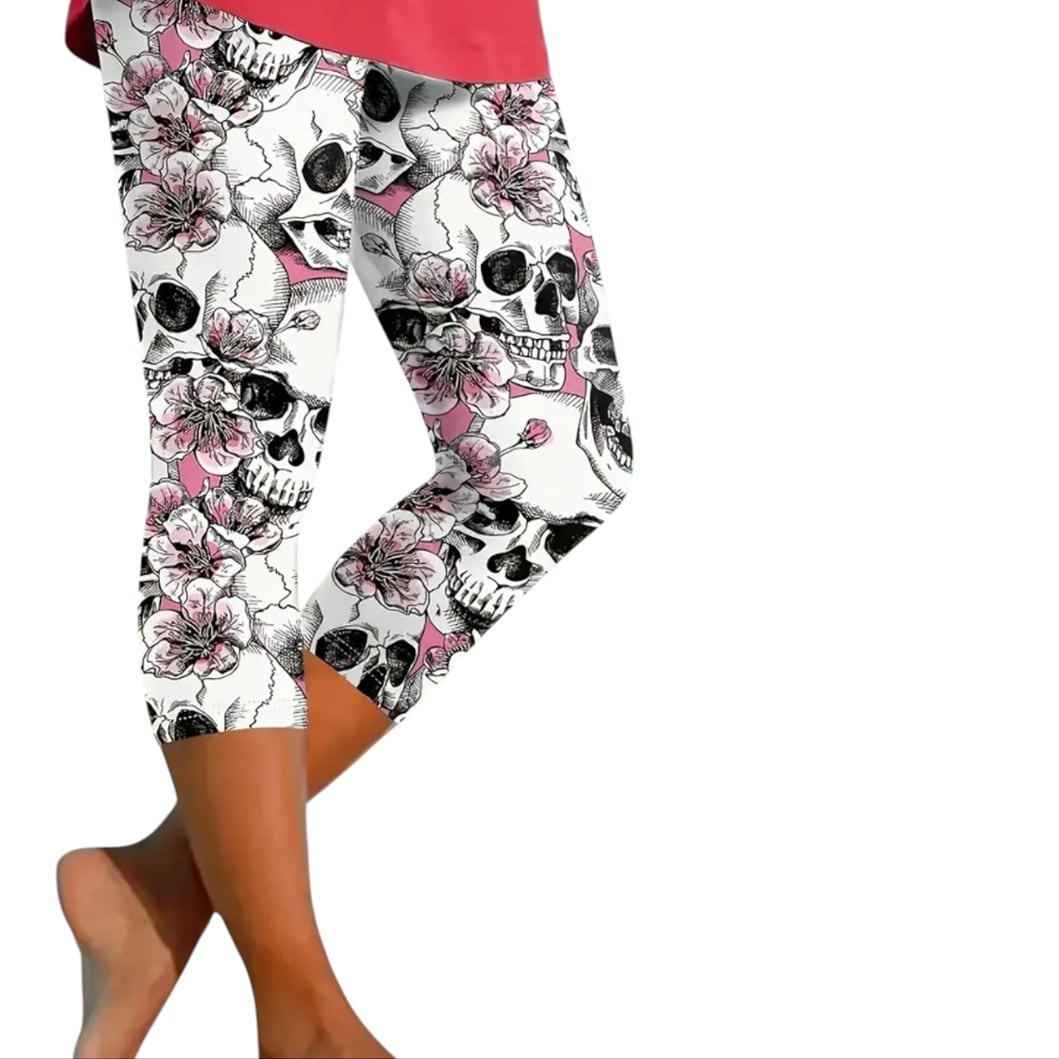 大きいサイズ レディース レギンス スパッツ カプリ クロップド 6分丈 7分丈 柄パンツ 骸骨 ドクロ スカル 花柄 桜 5L 6L 7L ぽっちゃり 動きやすい ヨガ フィットネス トレーニング ゴシック パンク