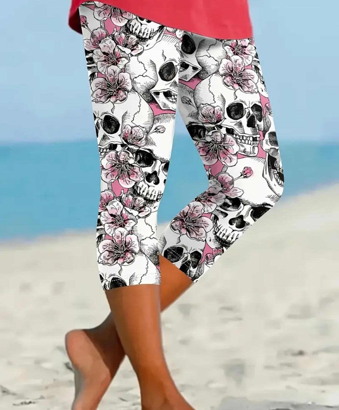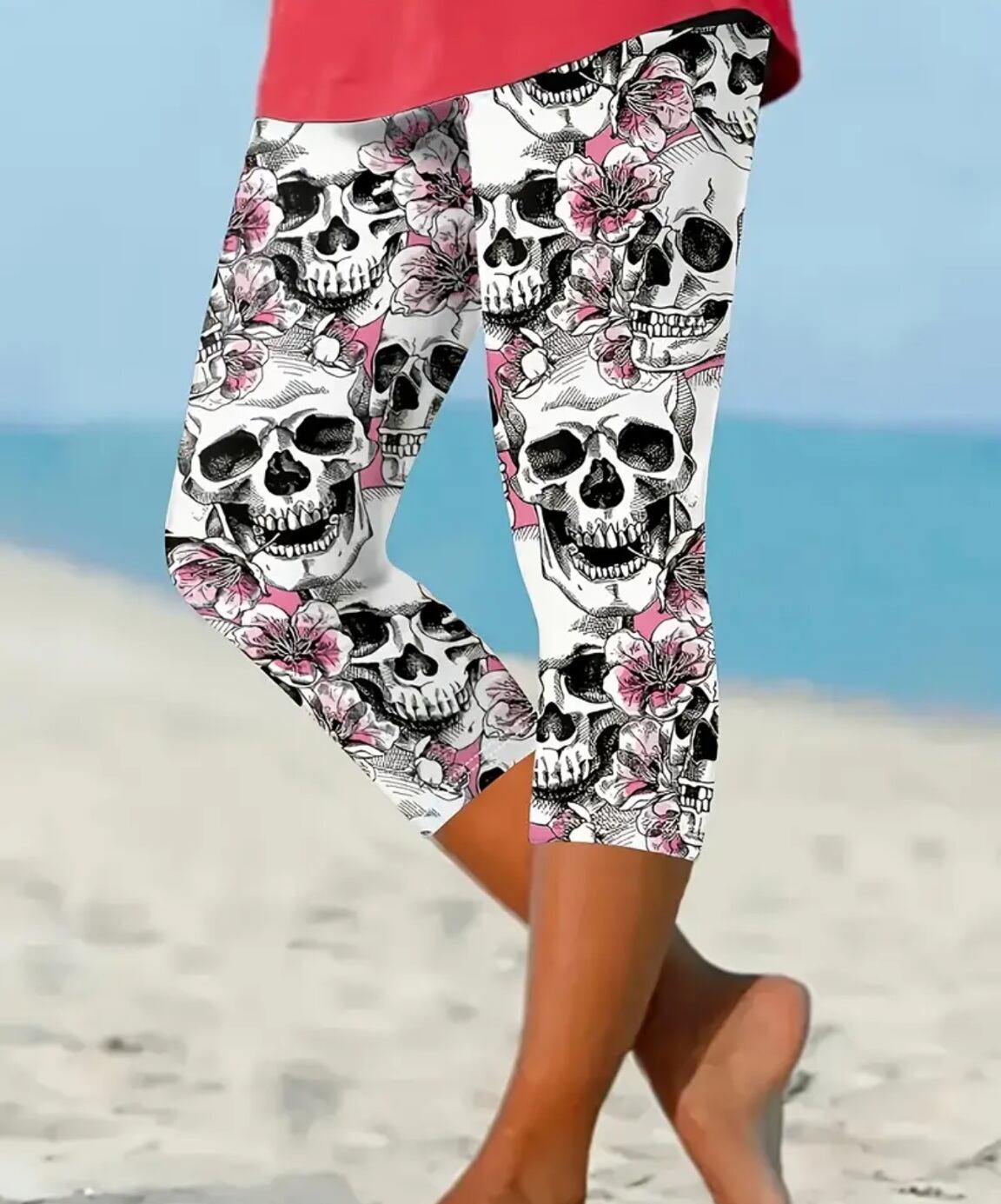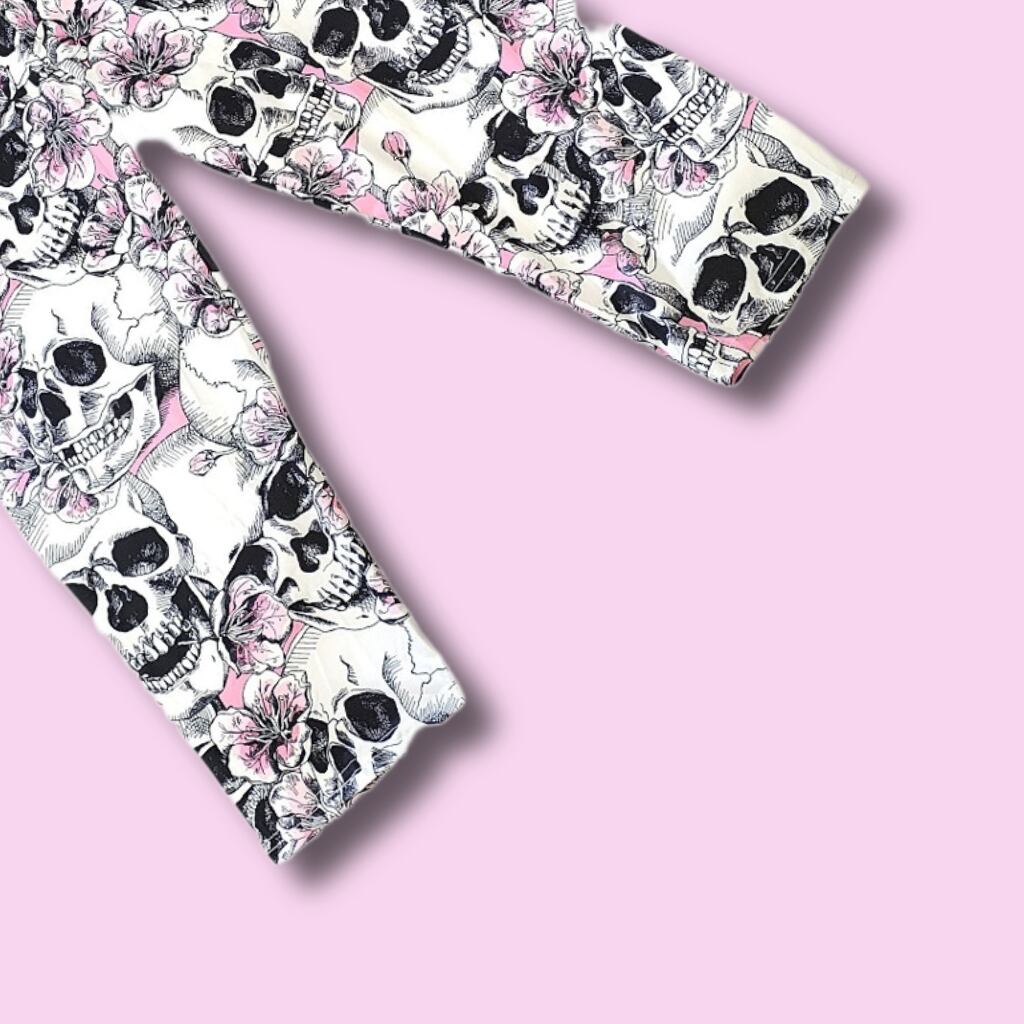 大きいサイズ レディース レギンス スパッツ カプリ クロップド 6分丈 7分丈 柄パンツ 骸骨 ドクロ スカル 花柄 桜 5L 6L 7L ぽっちゃり 動きやすい ヨガ フィットネス トレーニング ゴシック パンク
