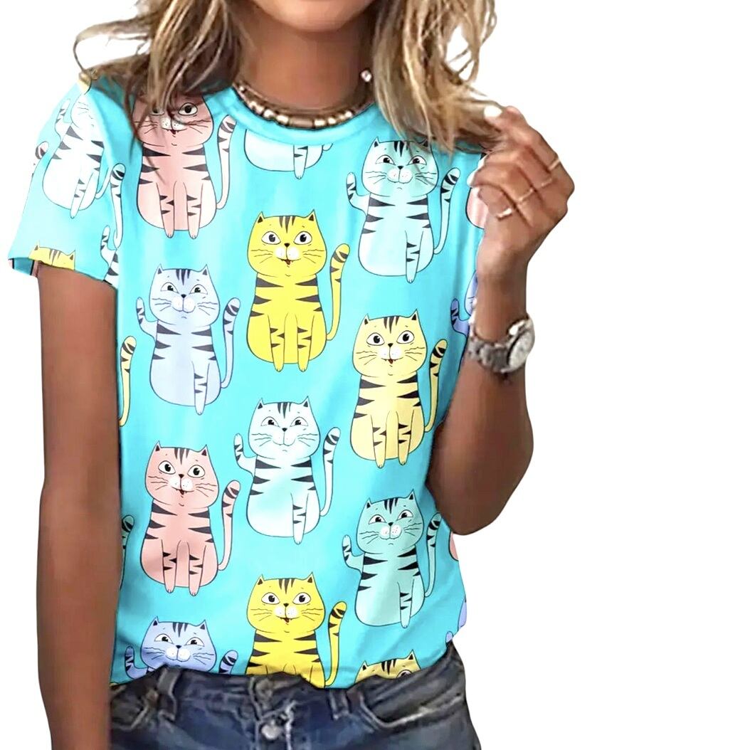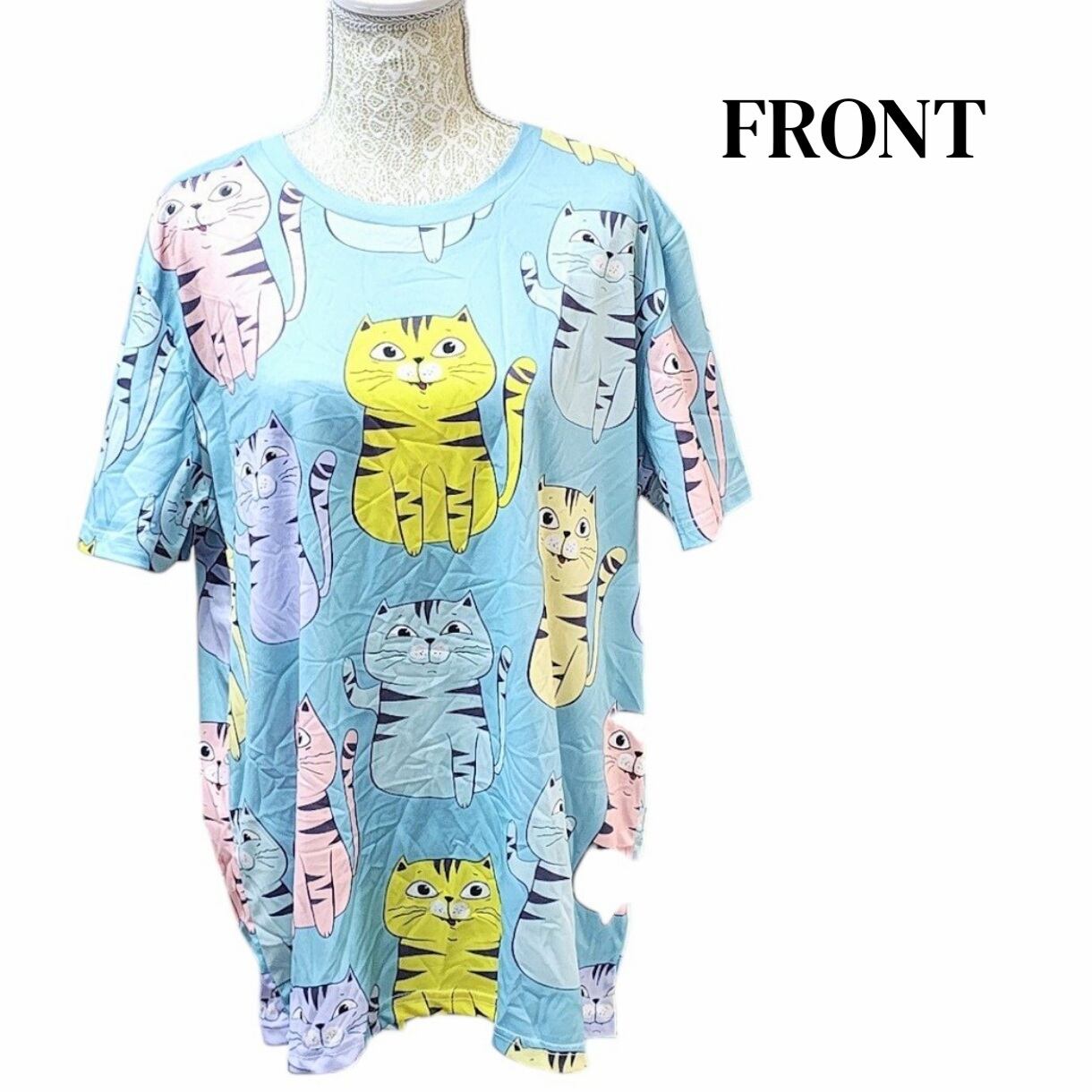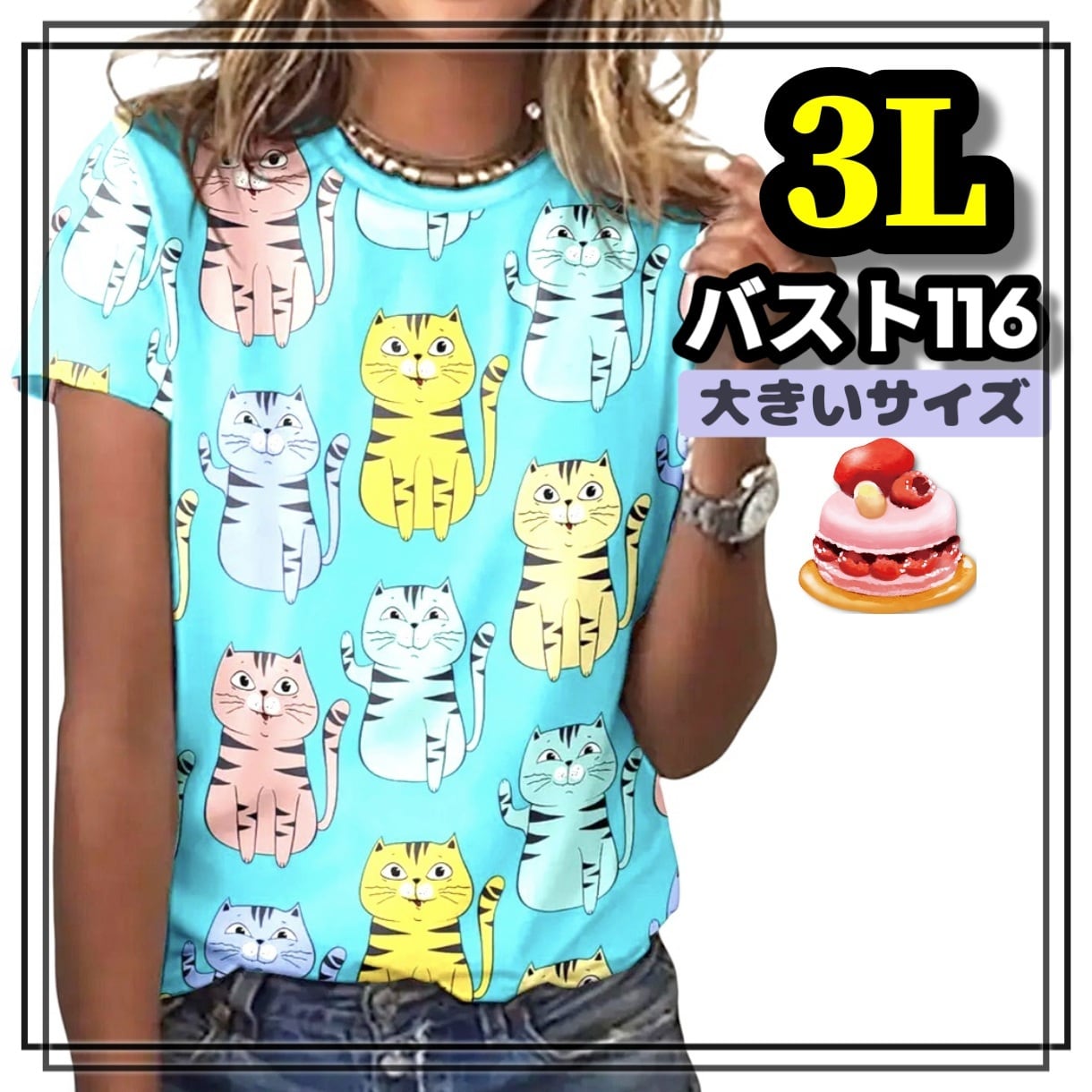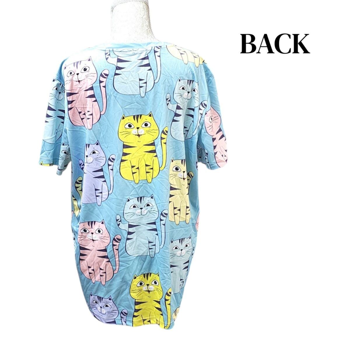 大きいサイズ レディース トップス 半袖 Tシャツ ねこ イラスト プリント トップス 猫柄 オーバーサイズ 3L 4L 可愛い