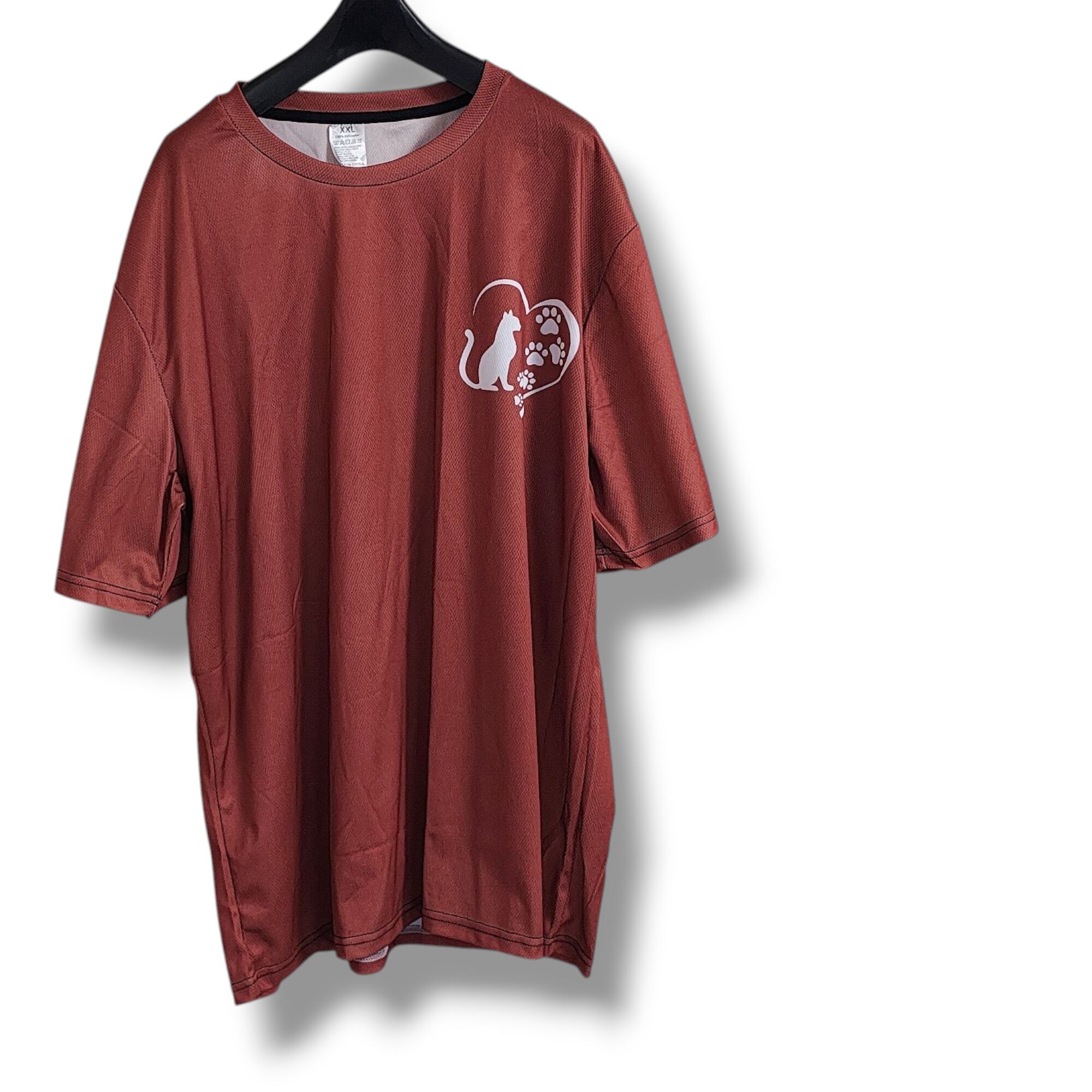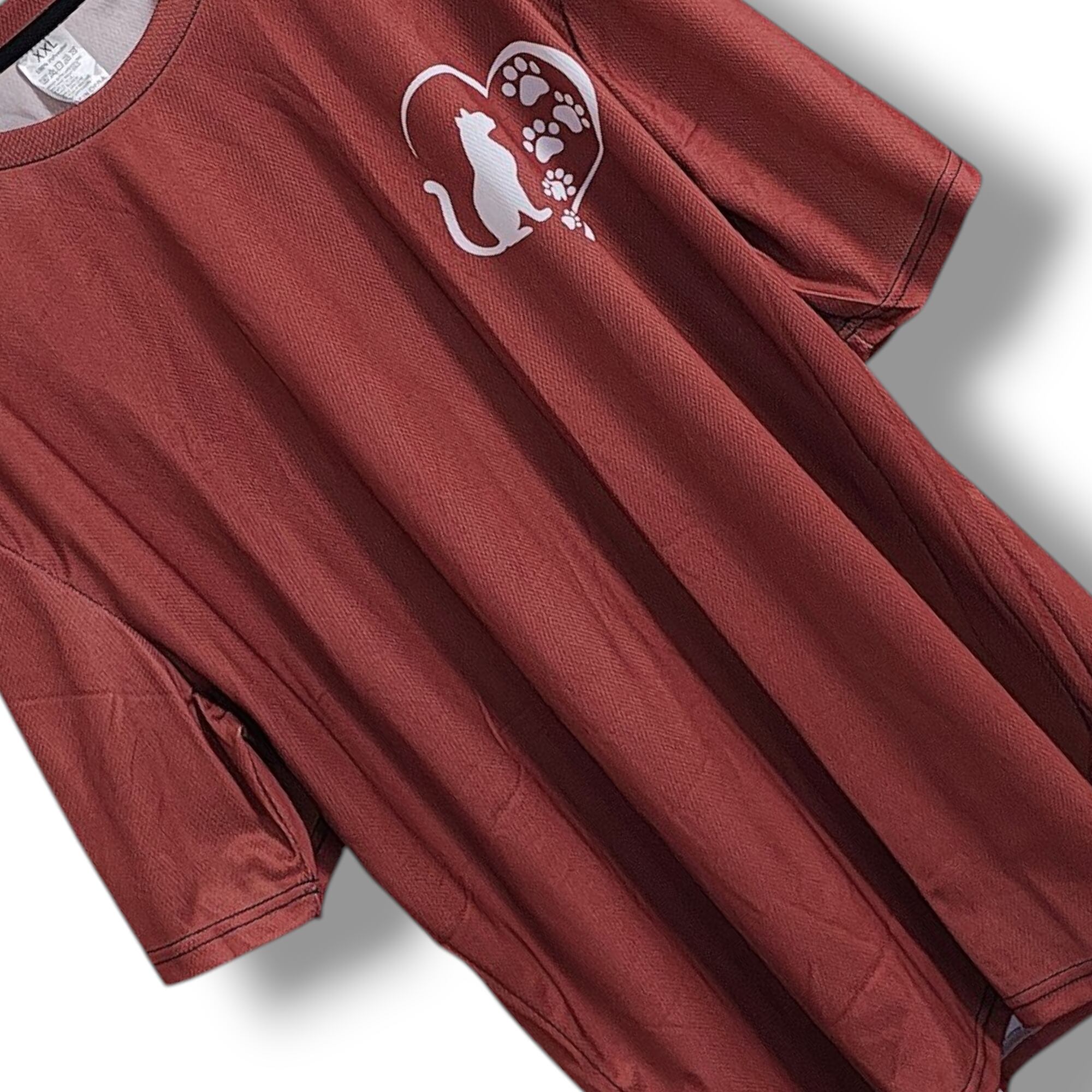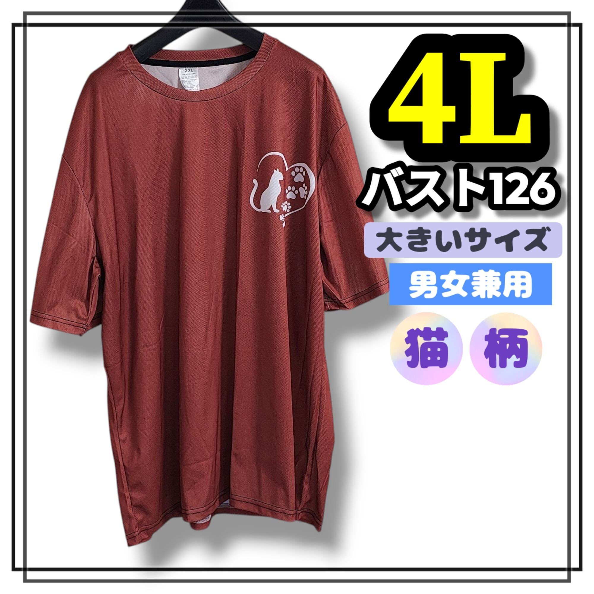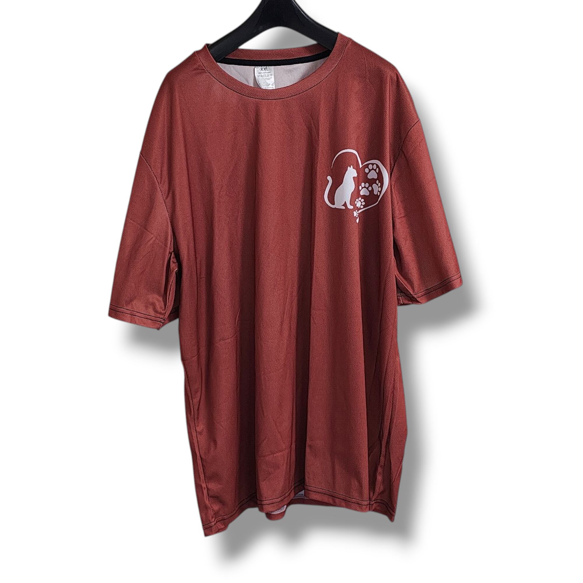 大きいサイズ メンズ レディース 半袖 Tシャツ ブラウン ねこ ハート 肉球 ブラウン ワンポイント