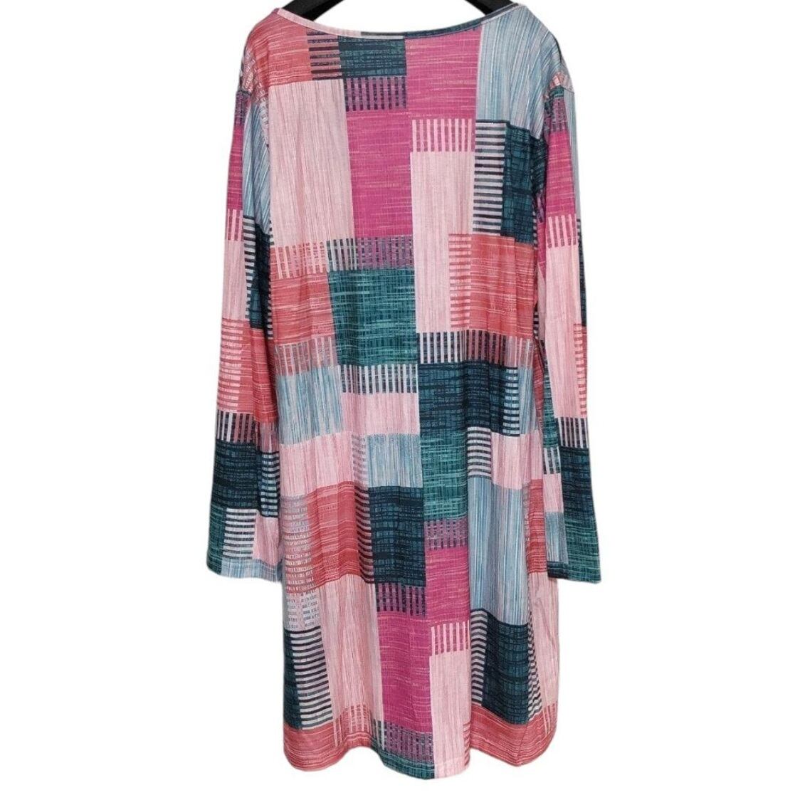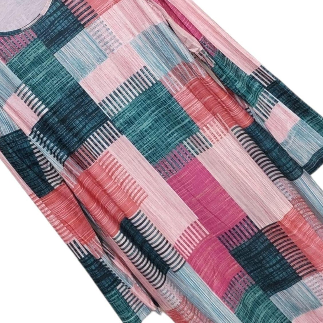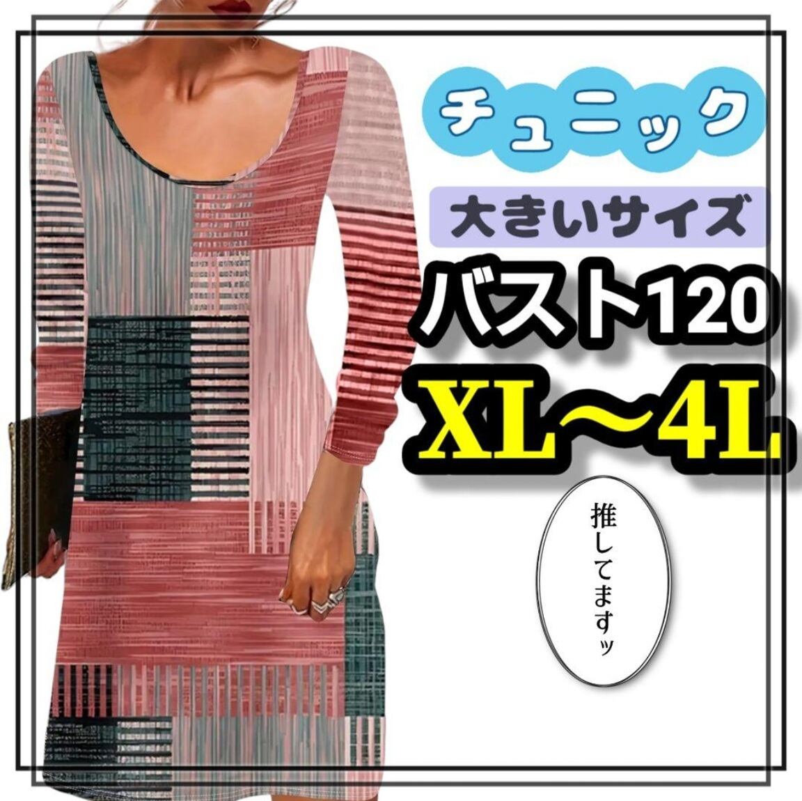 大きいサイズ レディース 長袖 チュニック トップス ワンピース Tシャツ チェック ストライプ カジュアル ぽっちゃり XL 3L 4L 体型カバー