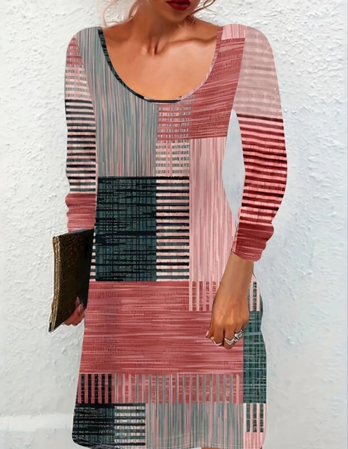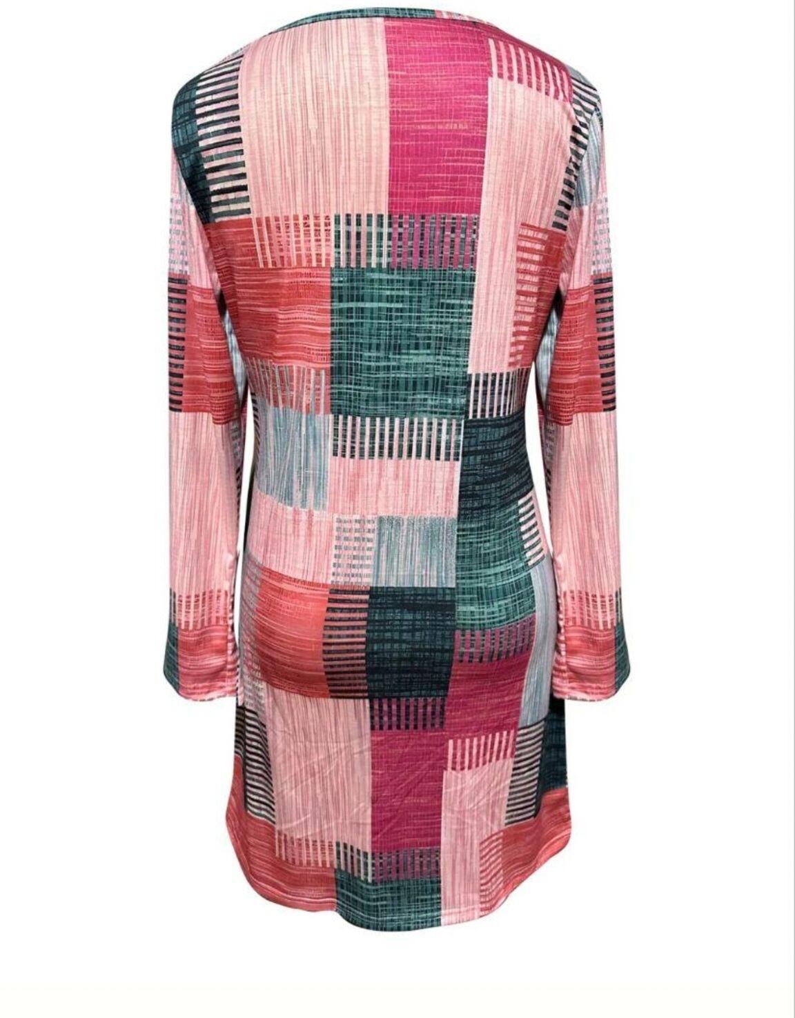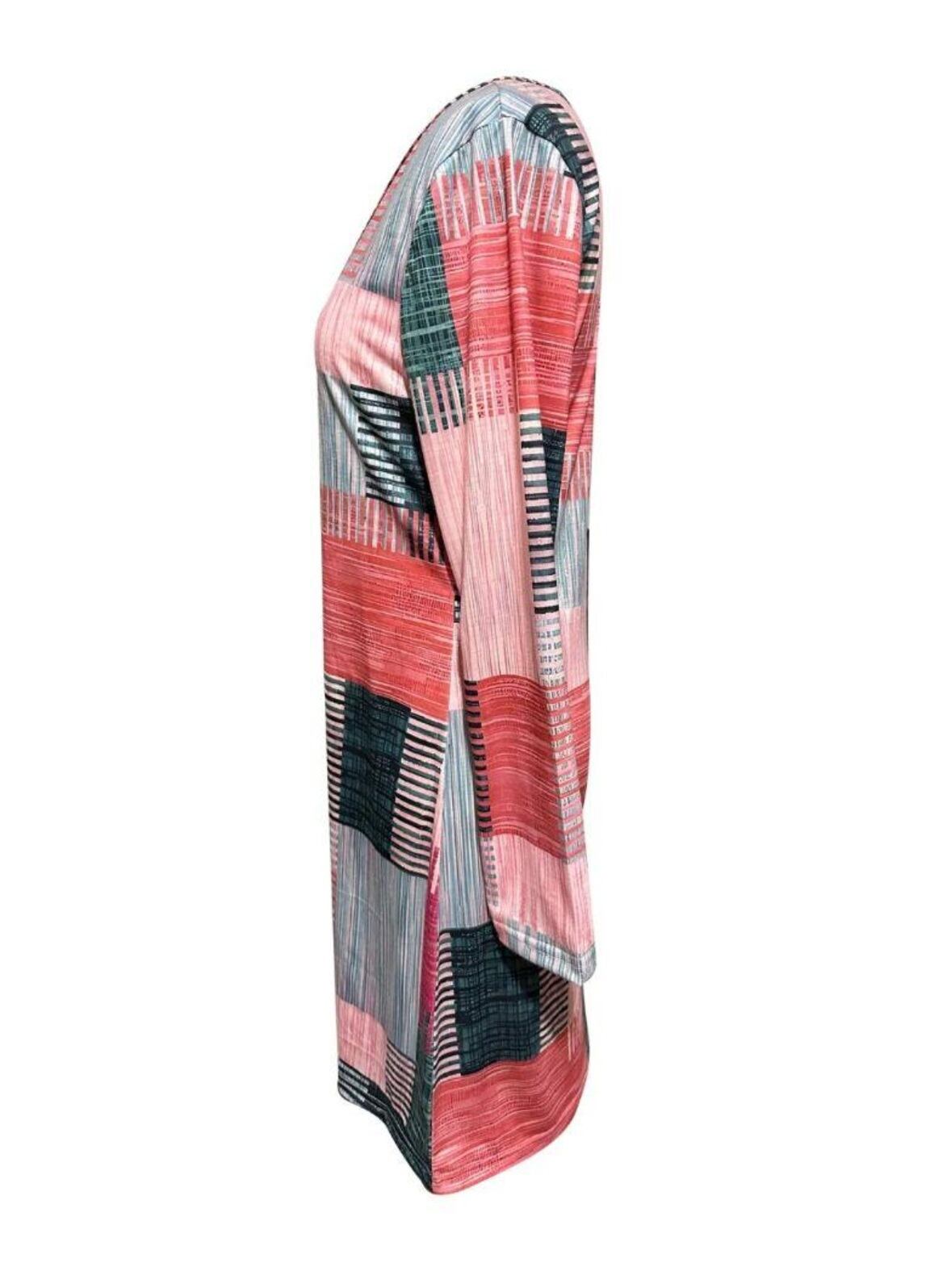 大きいサイズ レディース 長袖 チュニック トップス ワンピース Tシャツ チェック ストライプ カジュアル ぽっちゃり XL 3L 4L 体型カバー