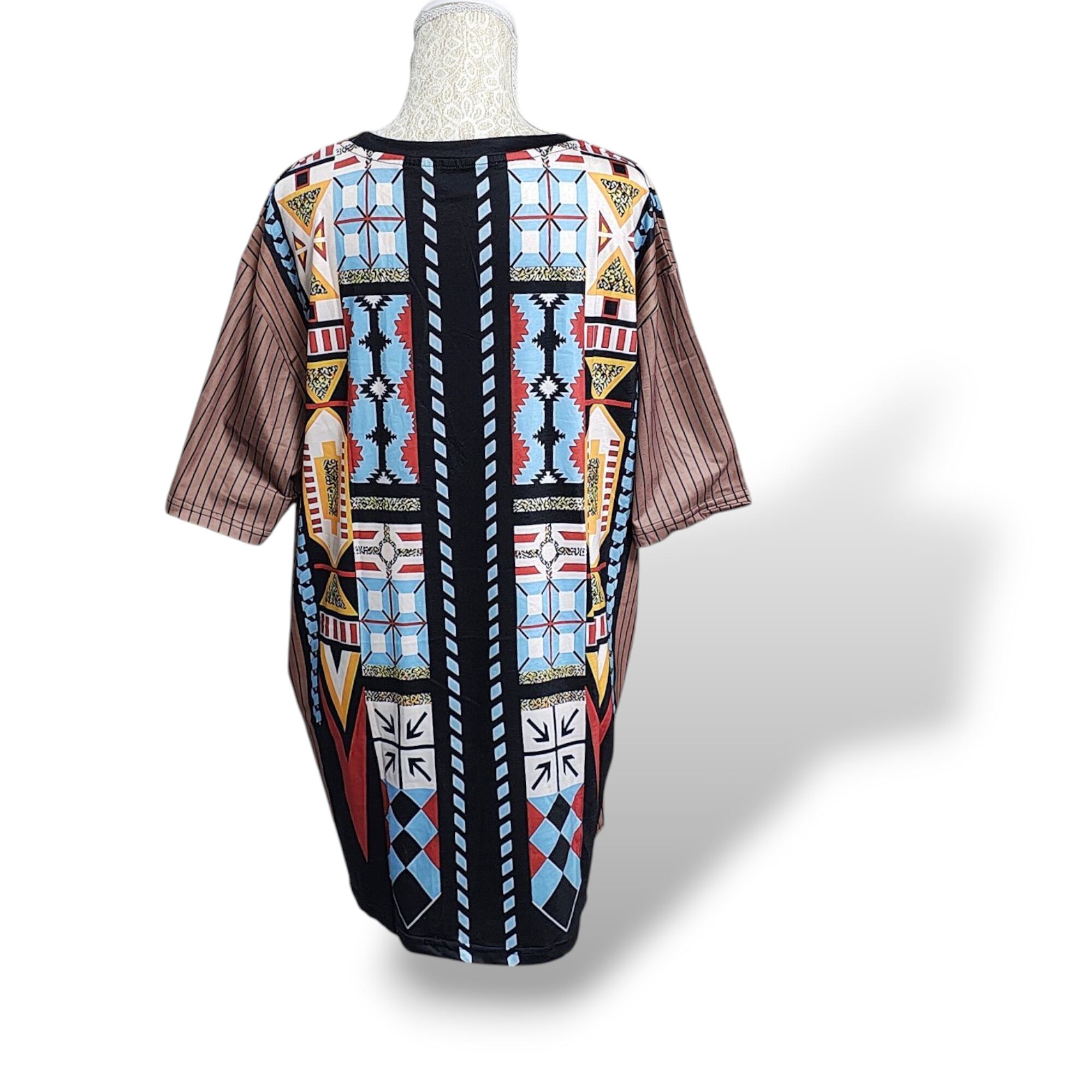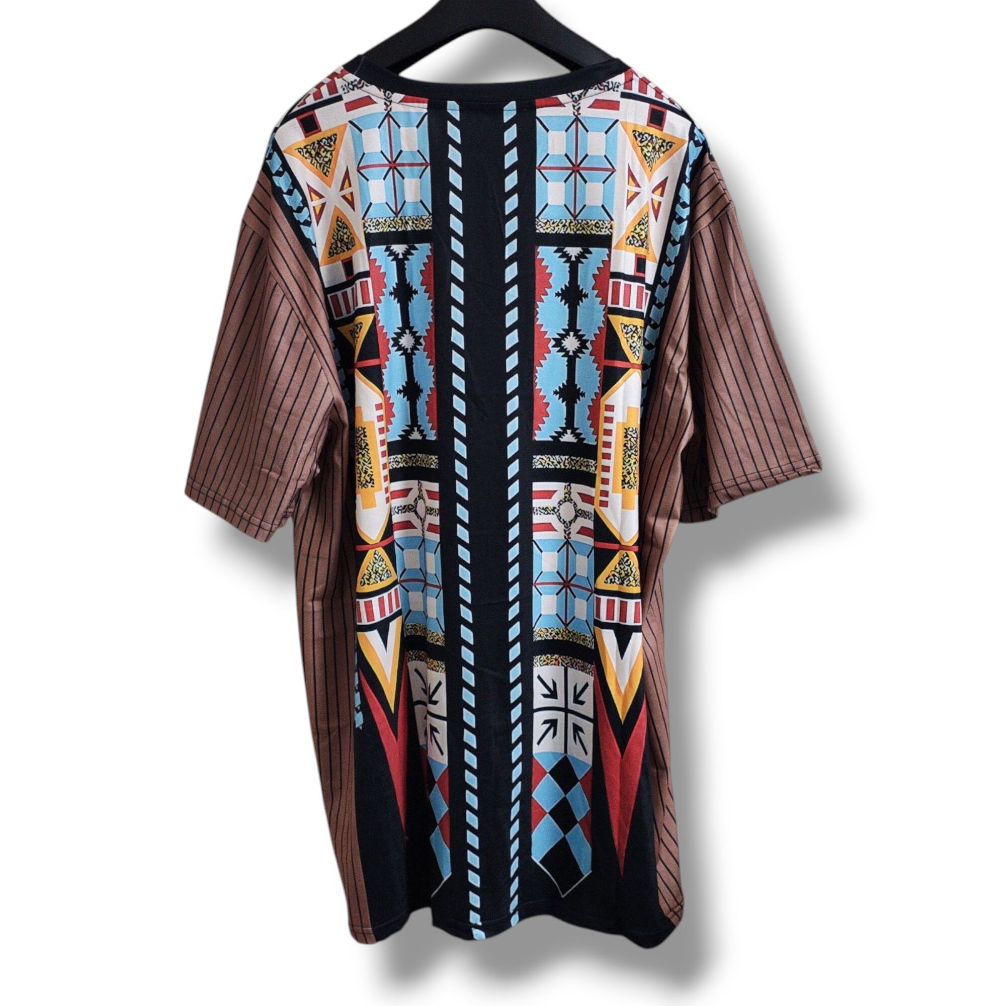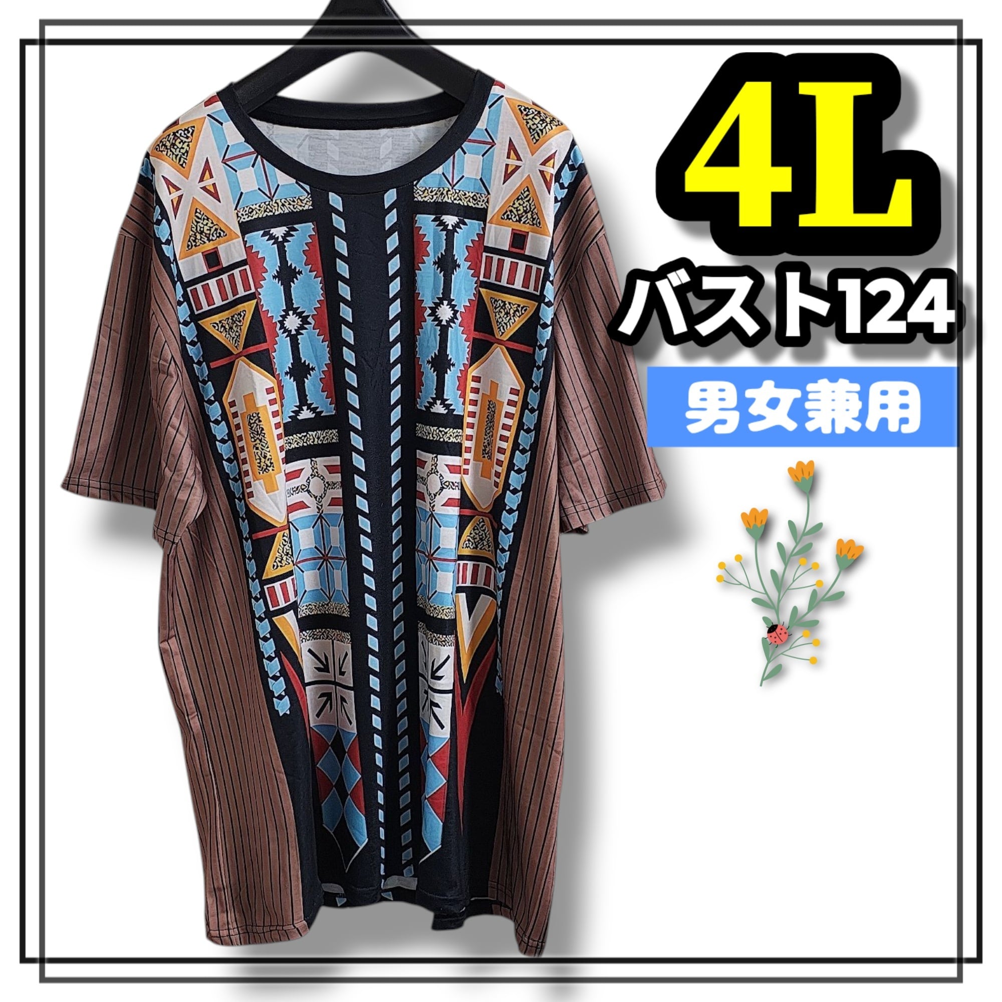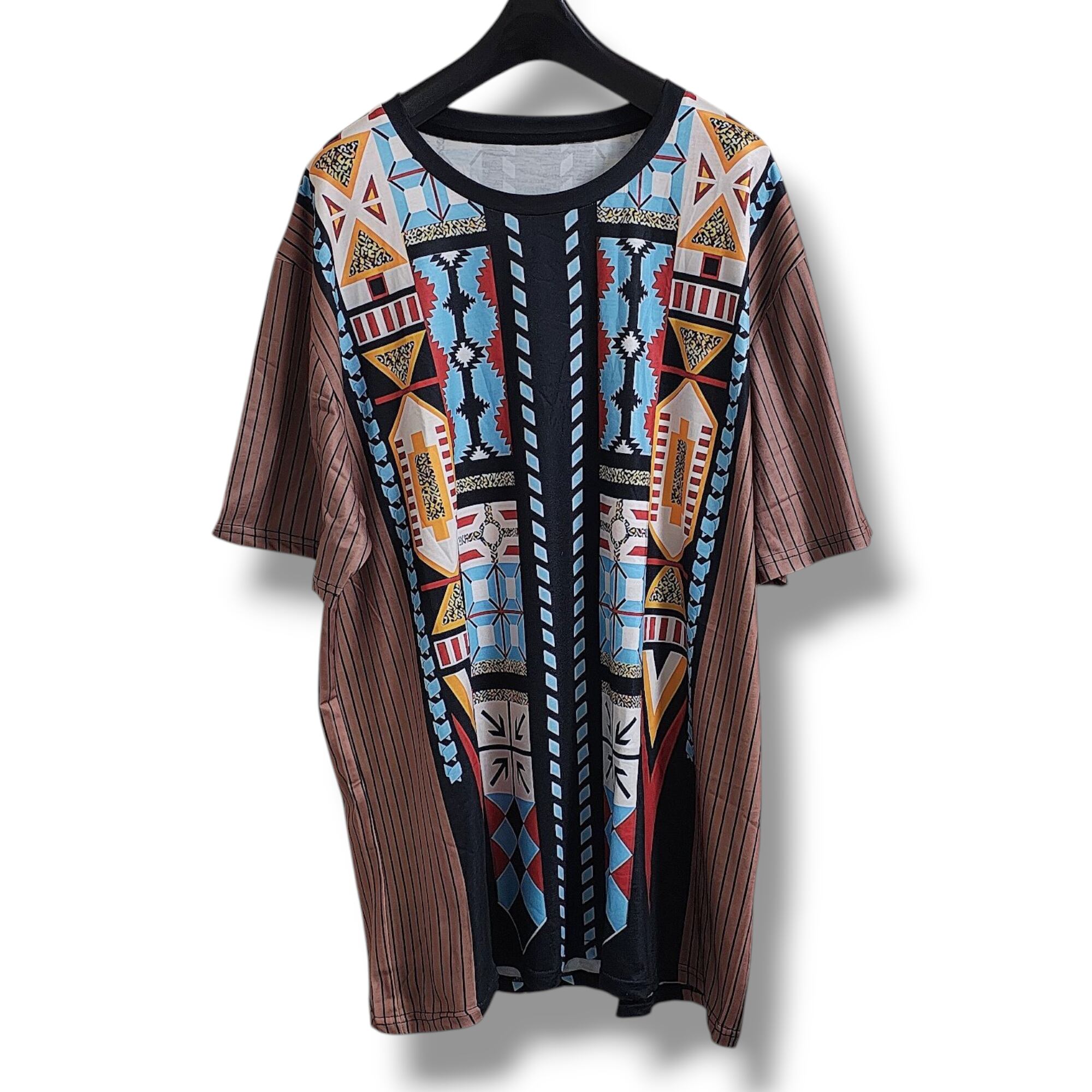 大きいサイズ メンズ レディース 半袖 Tシャツ エスニック 幾何学 ぽっちゃり アフリカン ストライプ 3L 4L 柄シャツ オーバーサイズ