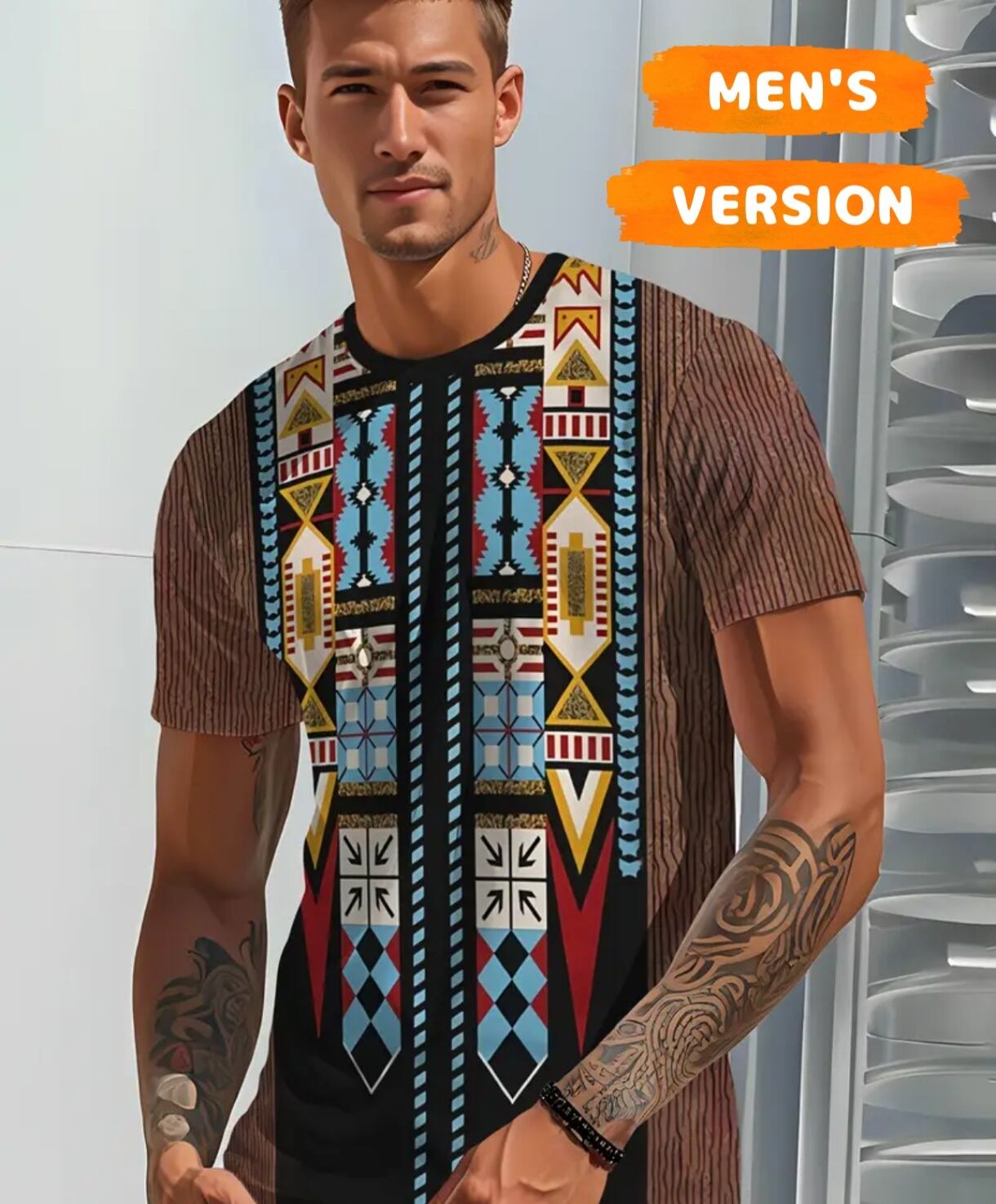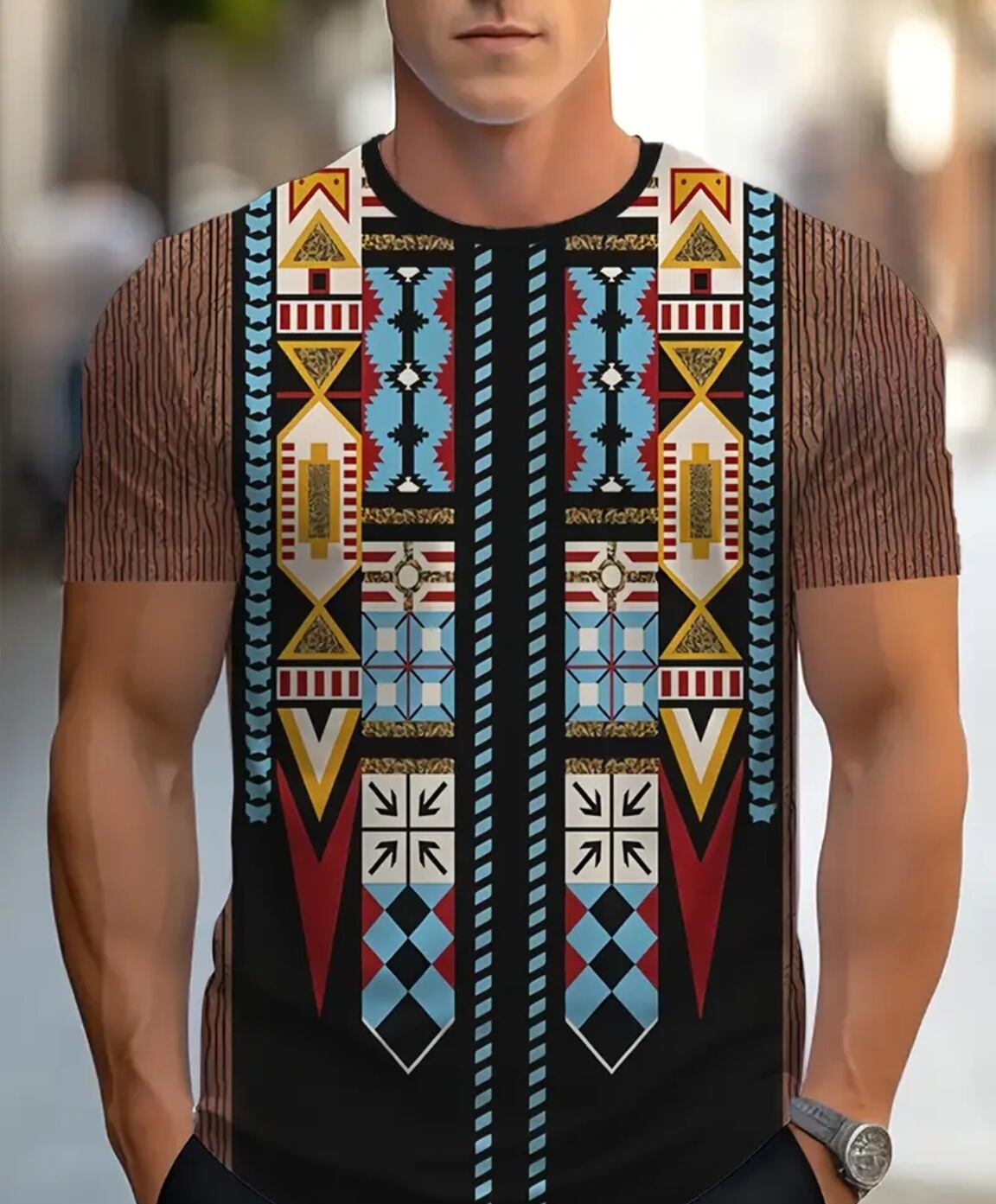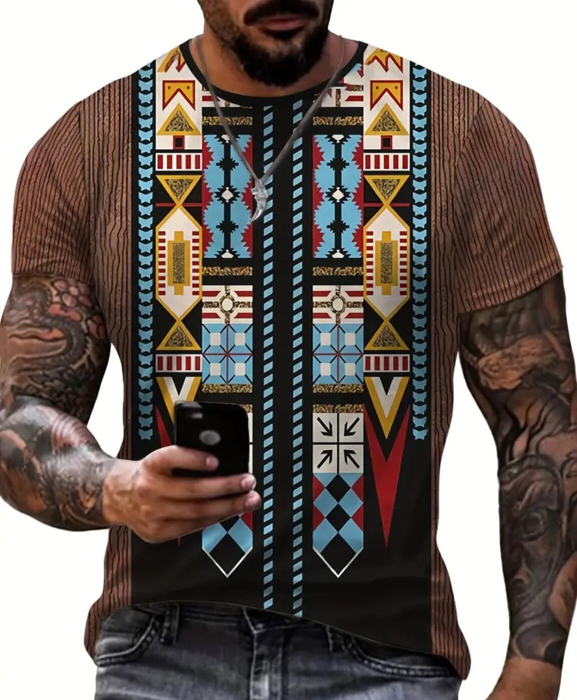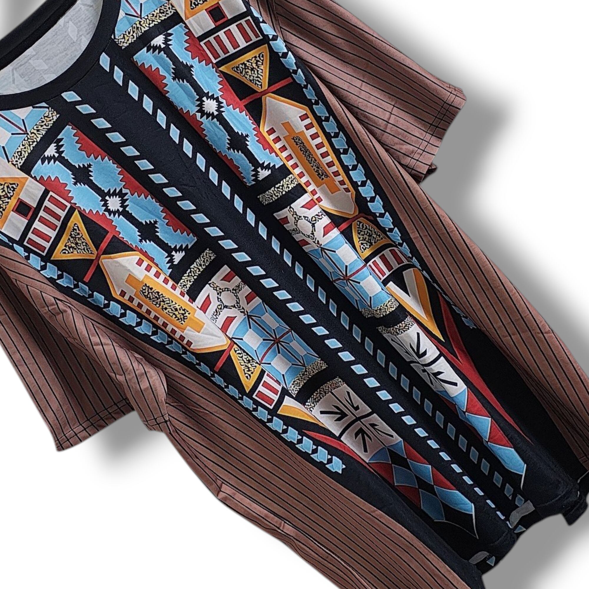 大きいサイズ メンズ レディース 半袖 Tシャツ エスニック 幾何学 ぽっちゃり アフリカン ストライプ 3L 4L 柄シャツ オーバーサイズ
