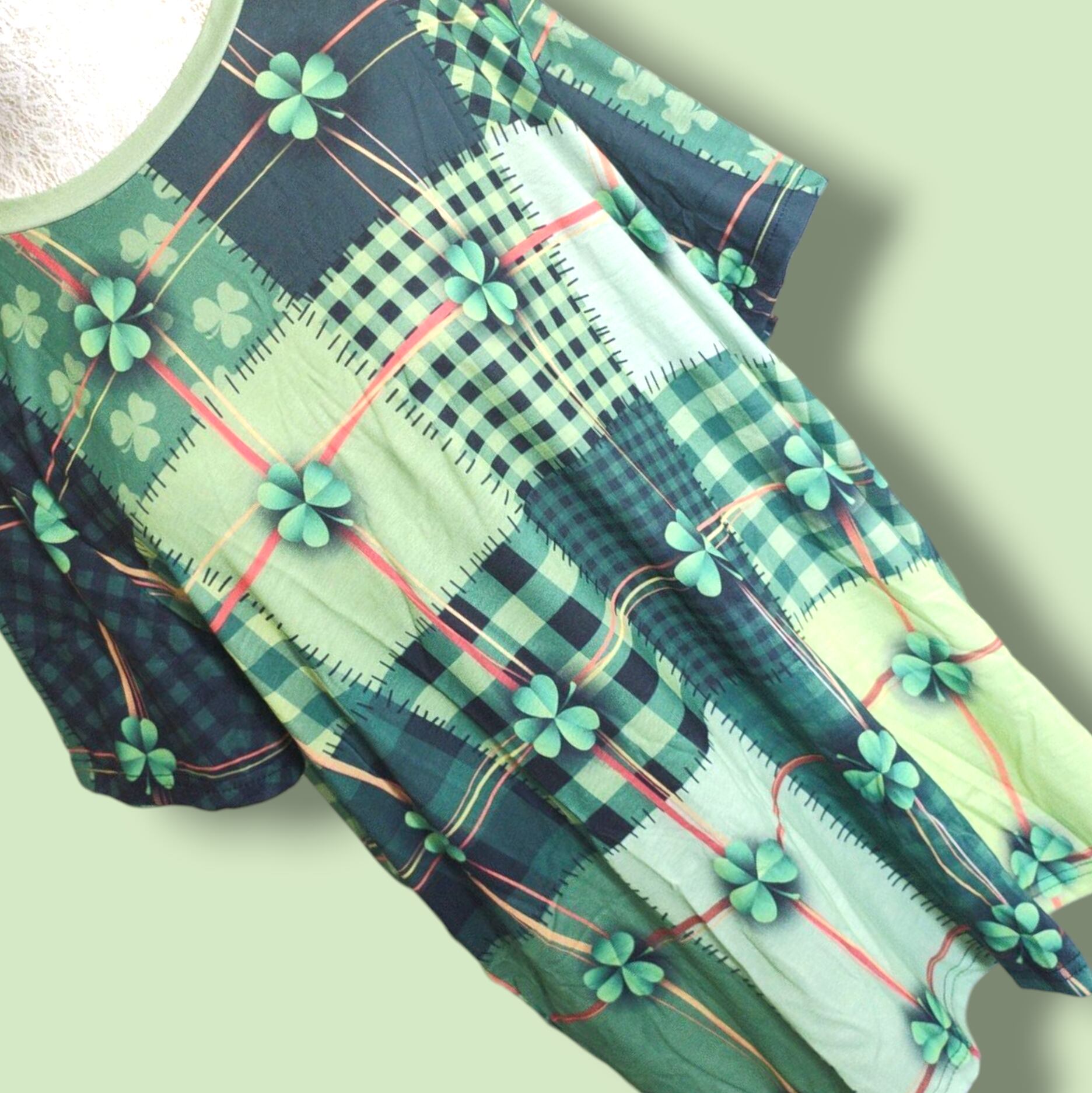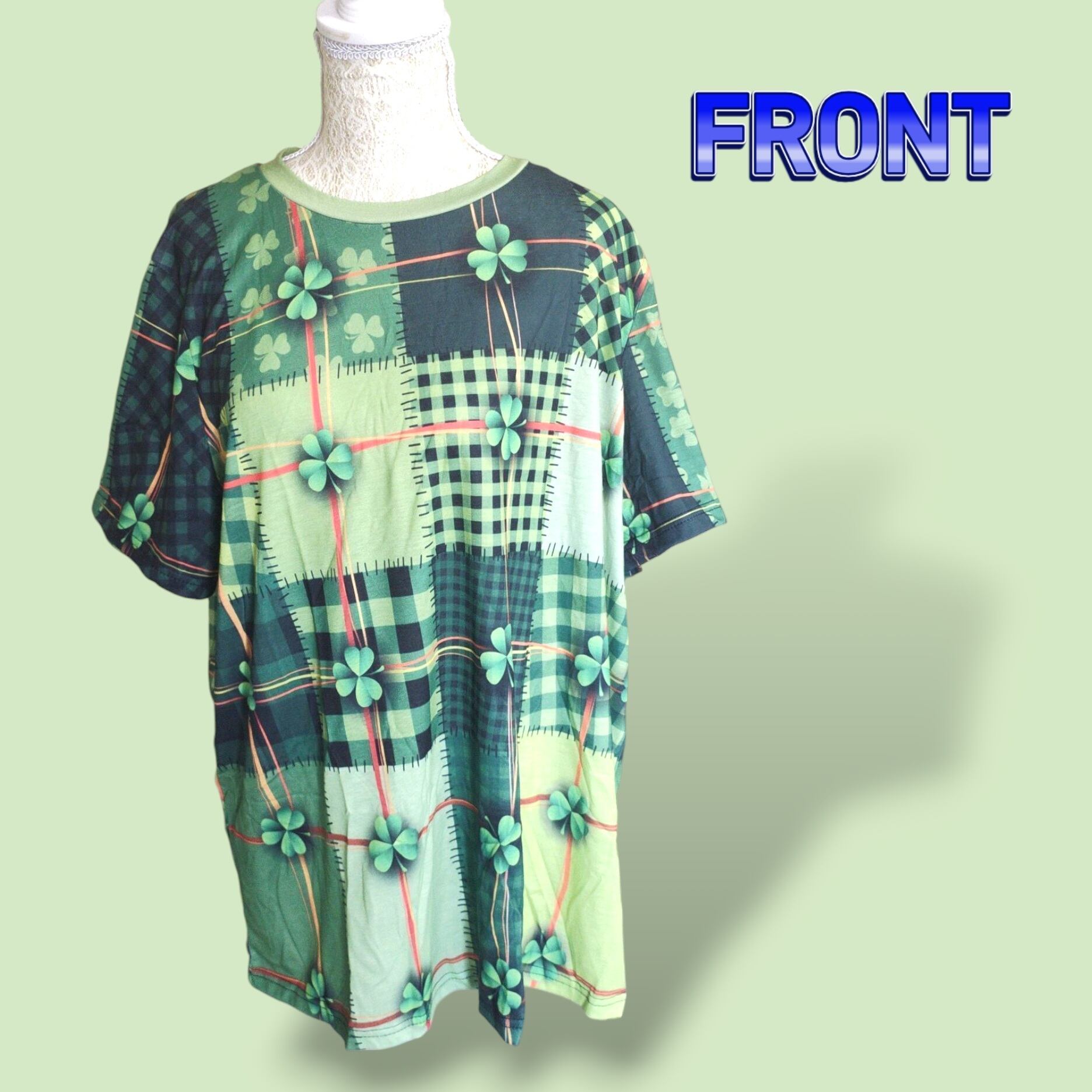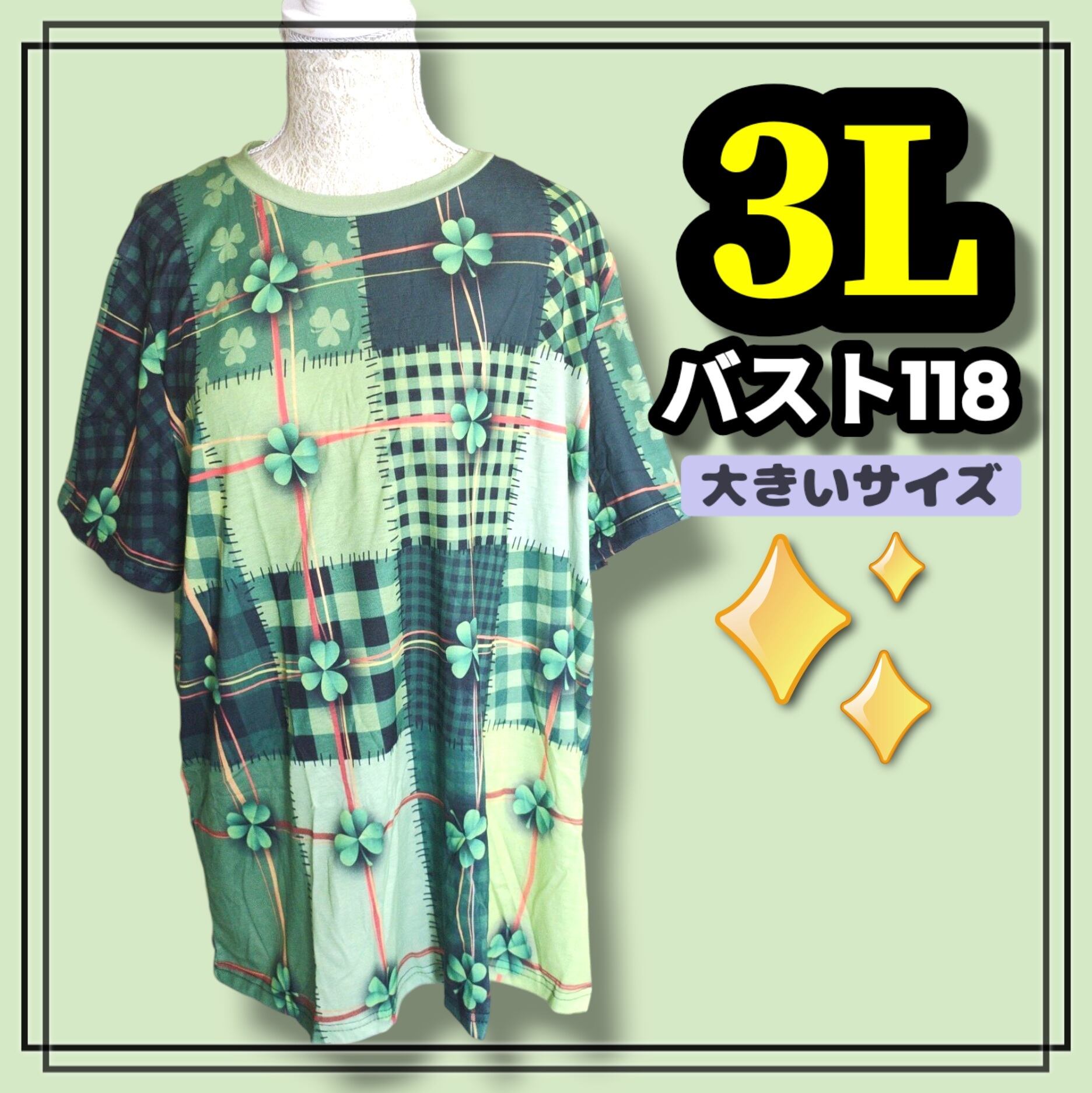 大きいサイズ レディース 半袖 Tシャツ オーバーサイズ クローバー ぽっちゃり パッチワーク 総柄 3L 4L XL