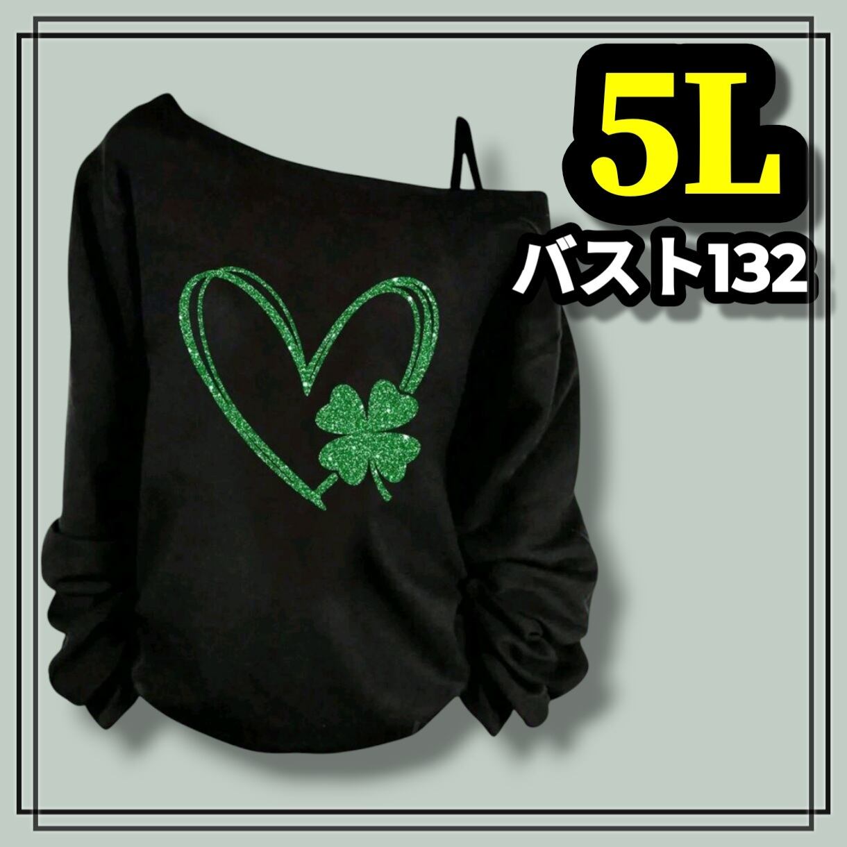 大きいサイズ レディース 長袖 Tシャツ クローバー ハート 黒 ブラック カジュアル オフショルダー トップス セクシー