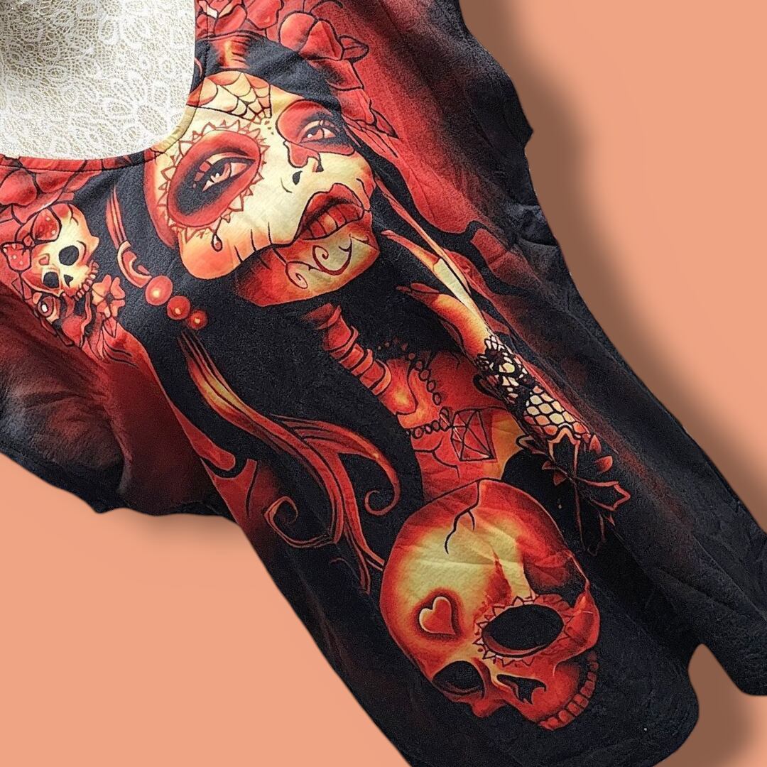 大きいサイズ レディース 半袖 Tシャツ ゴシック パンク 地雷系 スカル イラスト アート ノースリーブ カジュアル 原宿