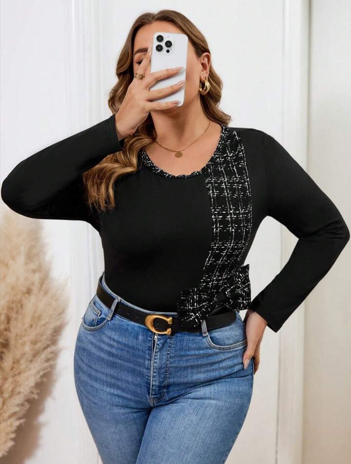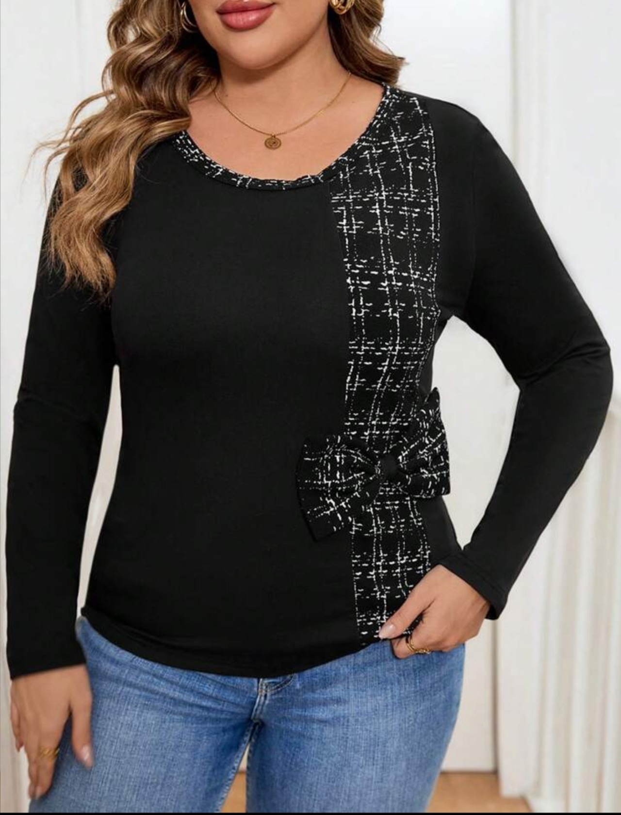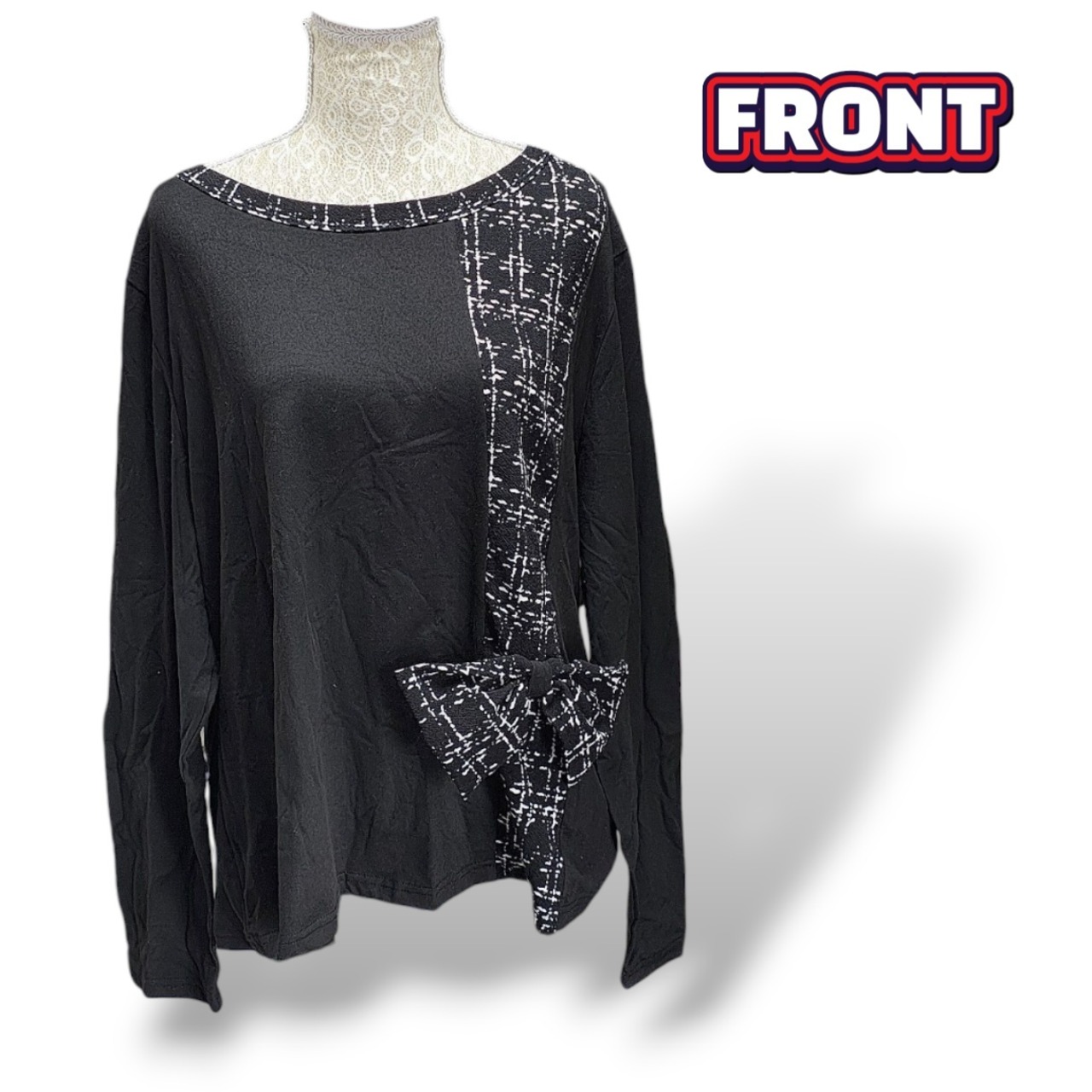 大きいサイズ レディース 長袖 Tシャツ カットソー トップス フォーマル エレガント フェミニン 4L 3L ストレッチ リボン