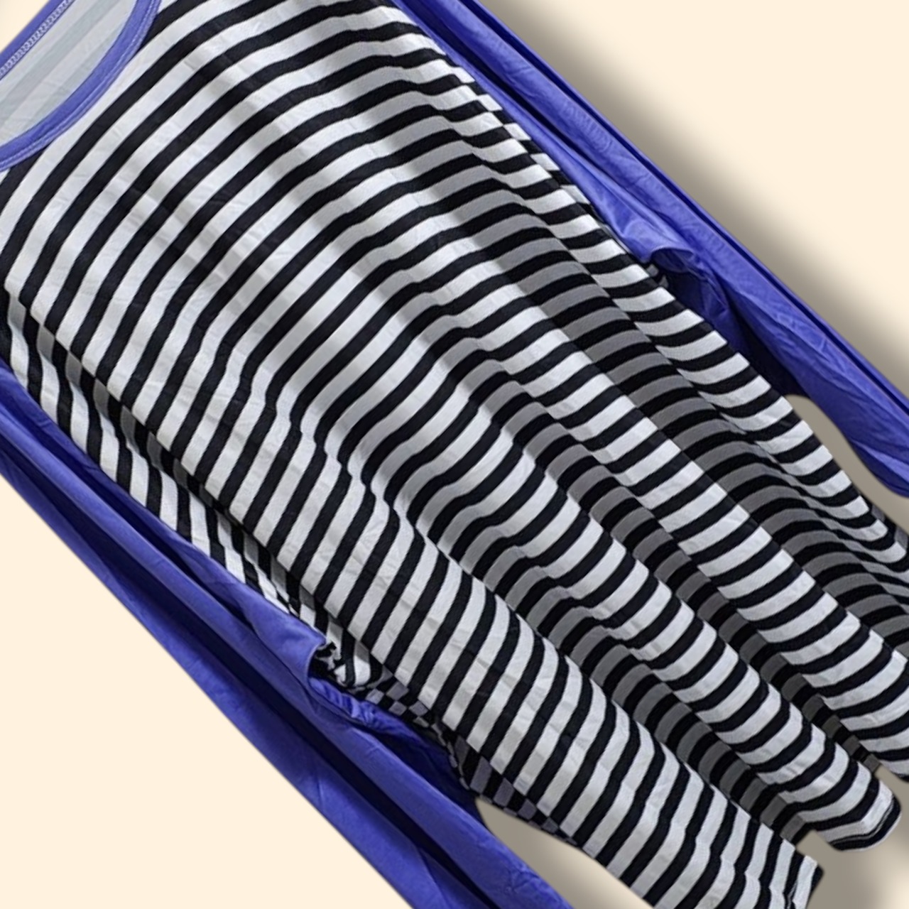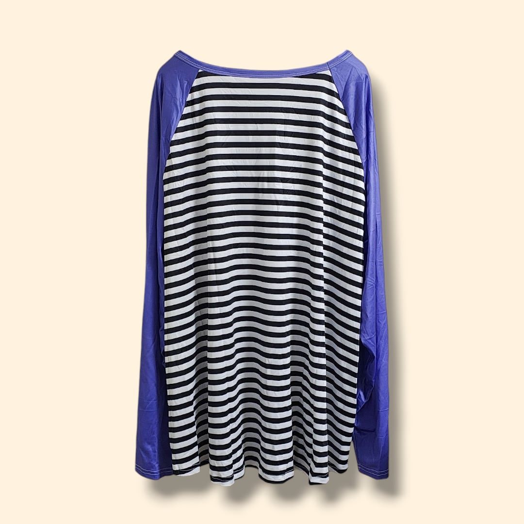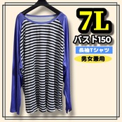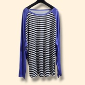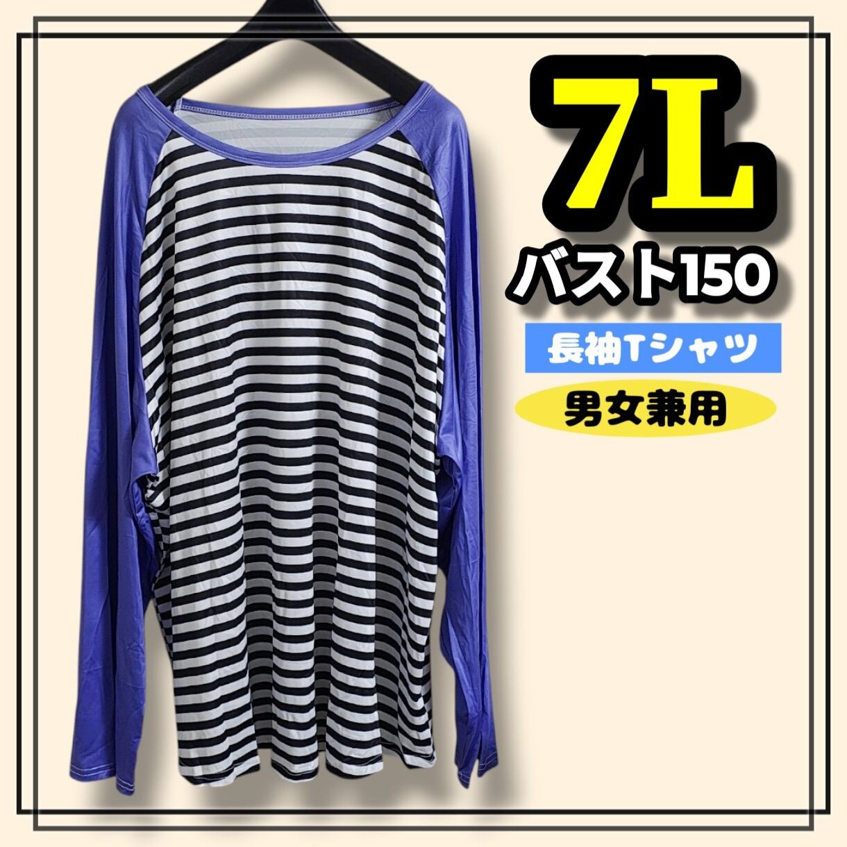 大きいサイズ レディース メンズ ボーダー 長袖 Tシャツ カジュアル ロンT 紫 オーバーサイズ ぽっちゃり ボーダー